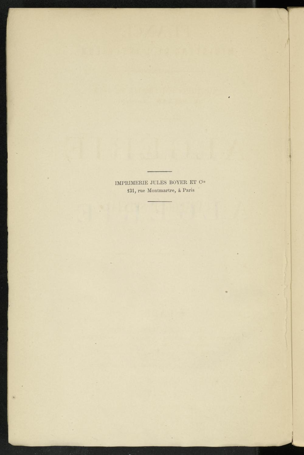 IMPRIMERIE JULES BOYER ET C 131, rue Montmartre, à Paris