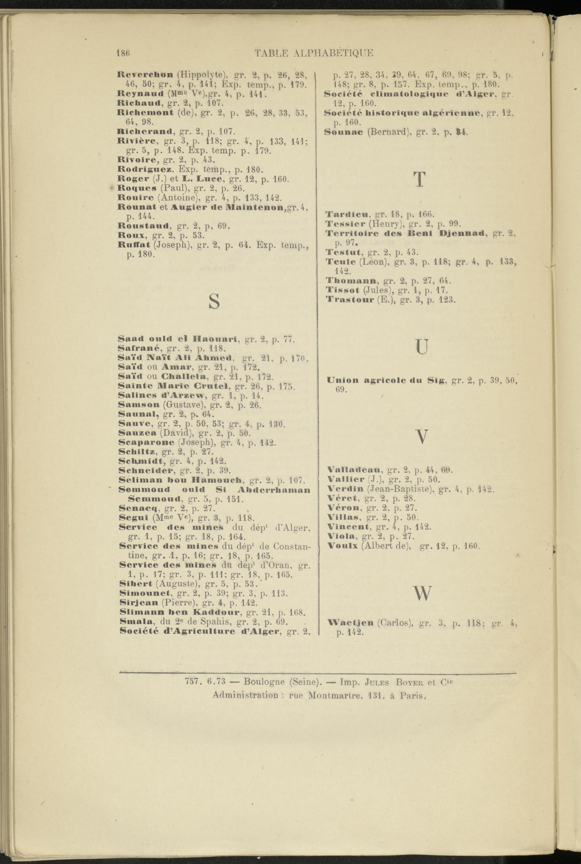 1, p. 17; gr. 3, p. 111; gr. 18, p. 165. Sihert (Auguste), gr. 5, p. 53.' Simonnet, gr. 2, p. 39; gr. 3, p. 113. Sirjean (Pierre), gr. 4, p. 142.