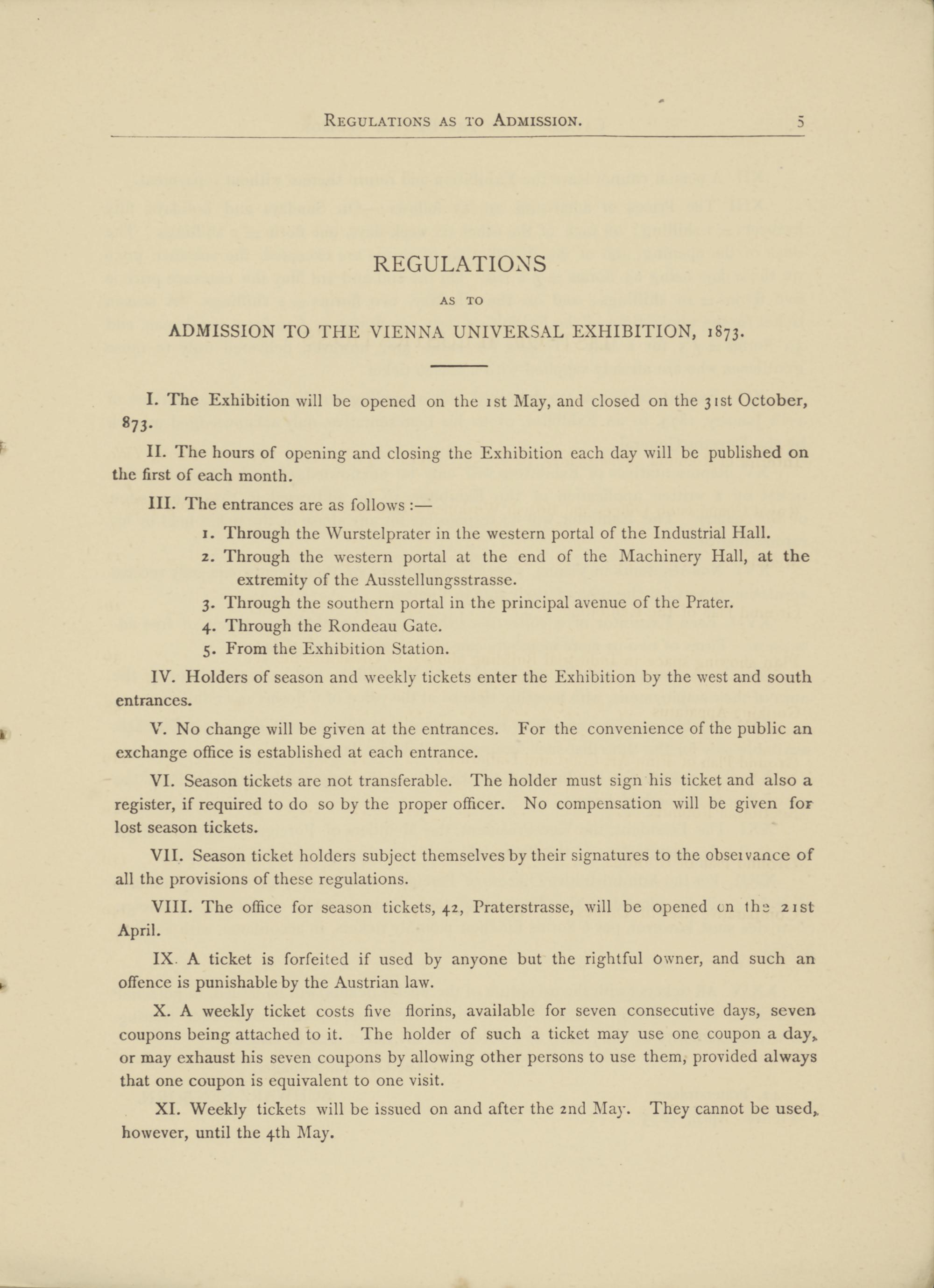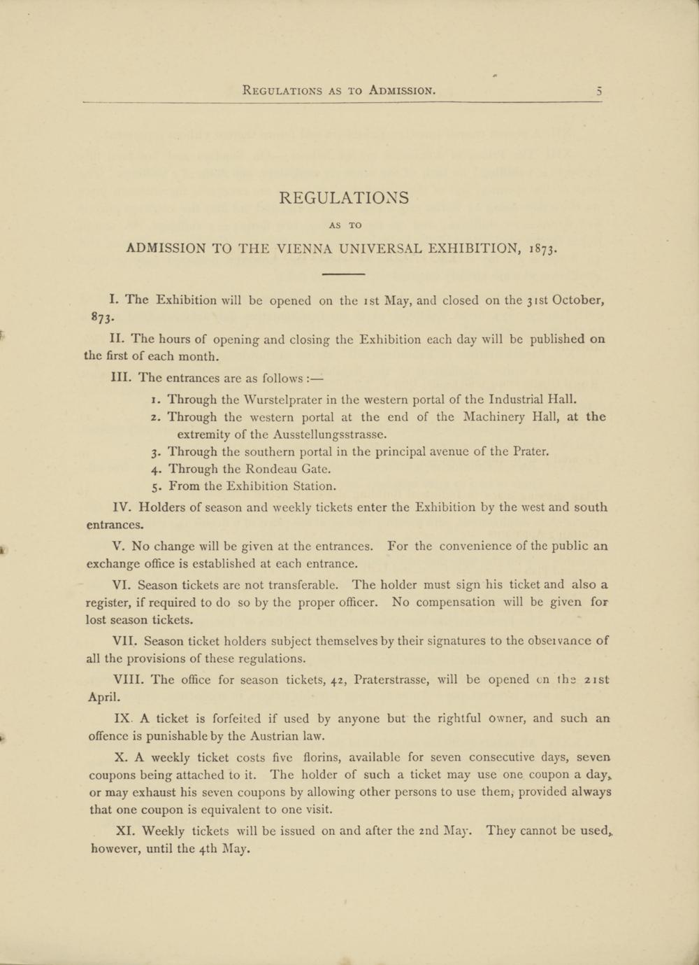 ADMISSION TO THE VIENNA UNIVERSAL EXHIBITION, 1873.