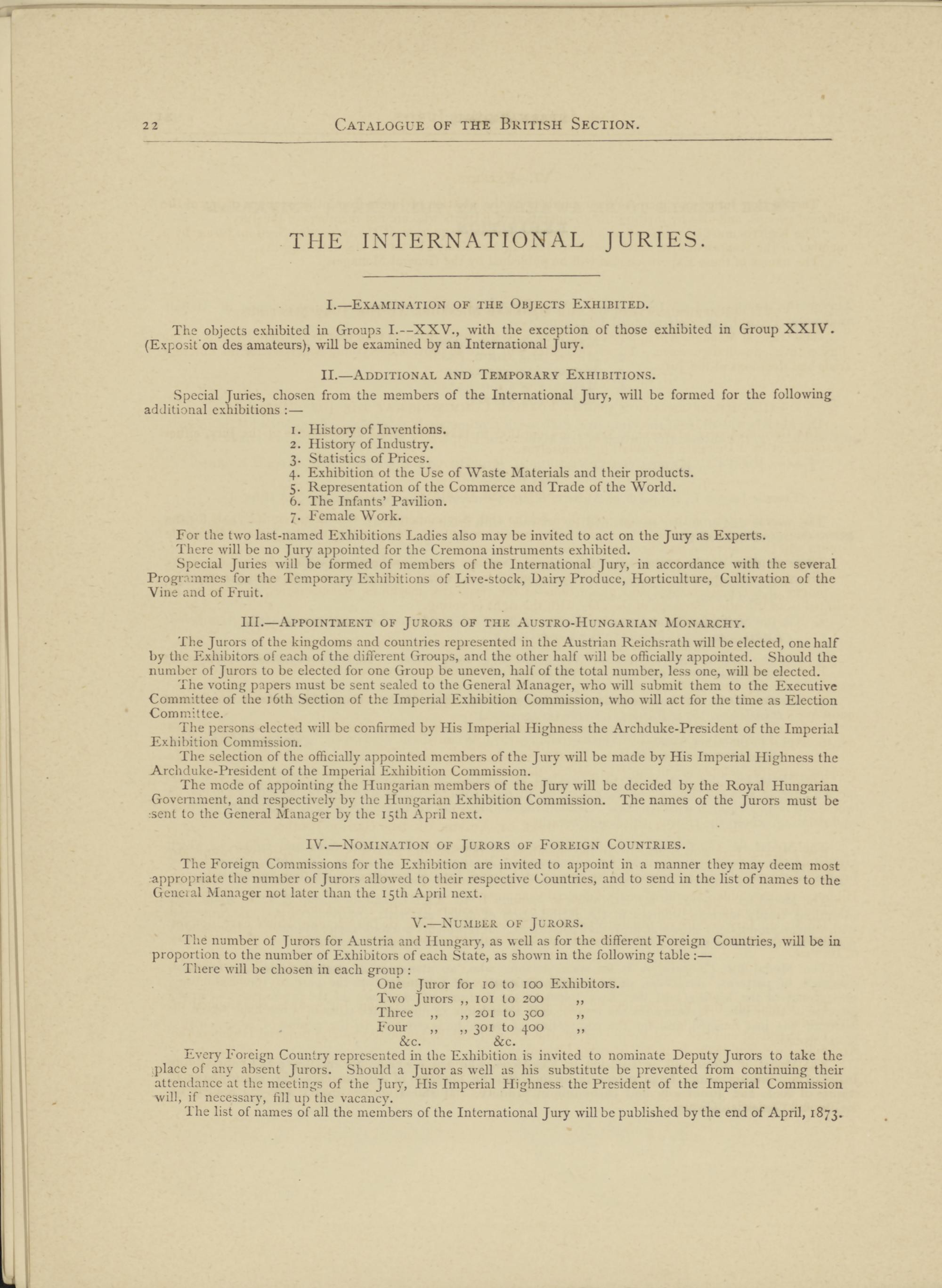 The list of names of all the members of the International Jury will be published by the end of April, 1873.