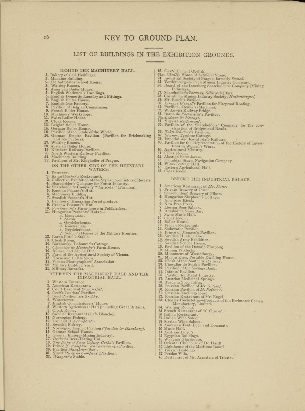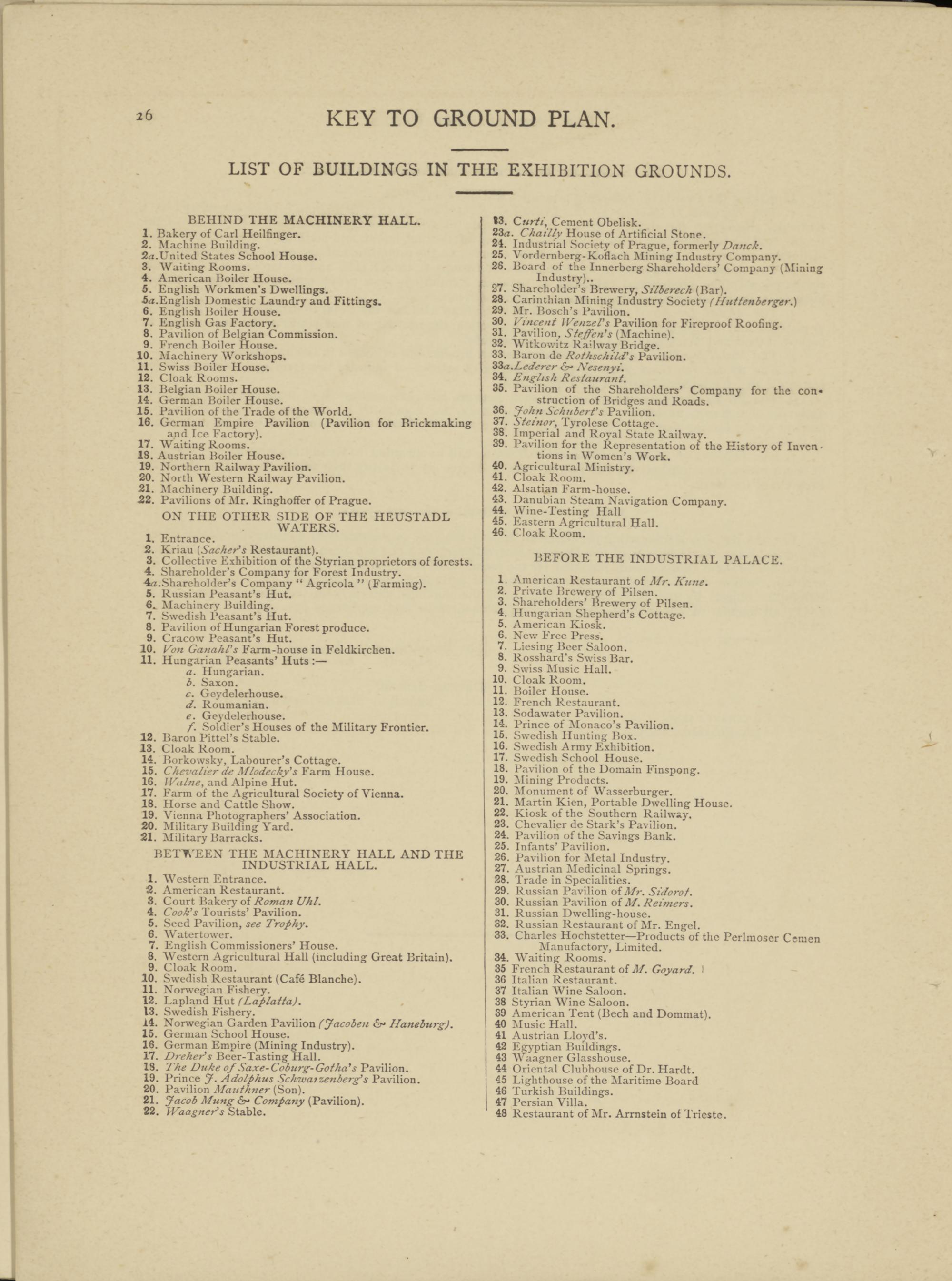 LIST OF BUILDINGS IN THE EXHIBITION GROUNDS.