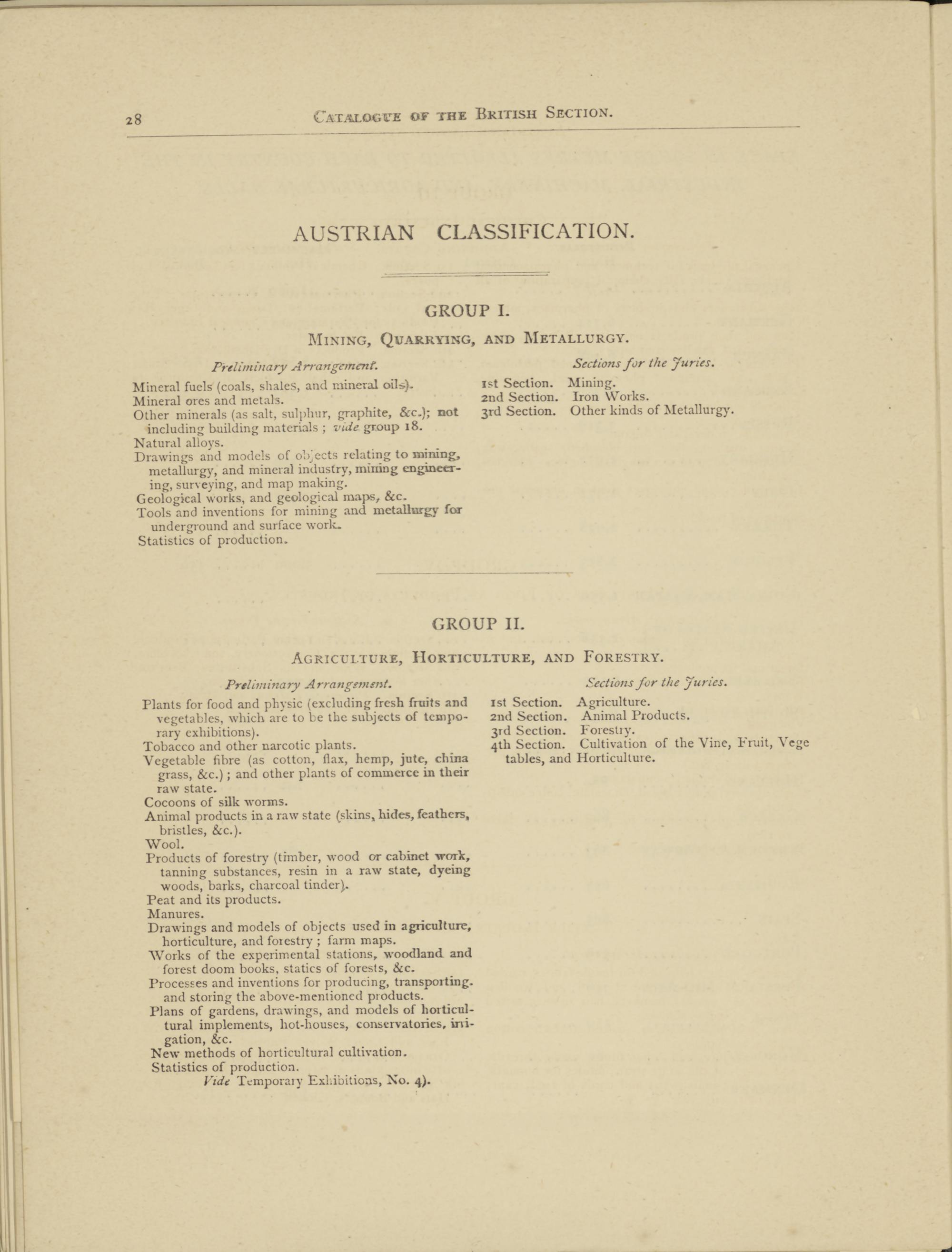 Preliminary Arrangement. Sections for the Juries.