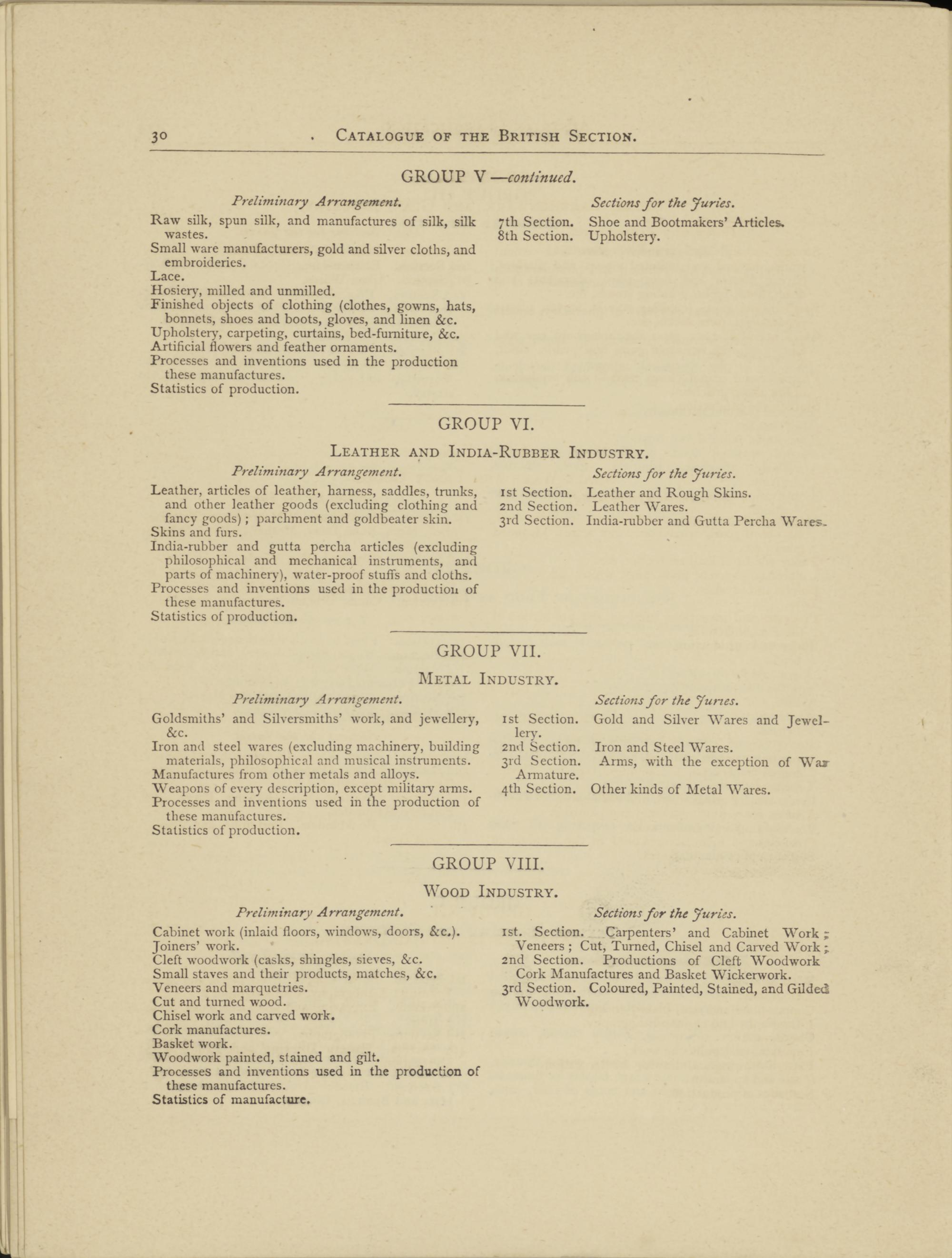 Preliminary Arrangement. Sections for the Juries.