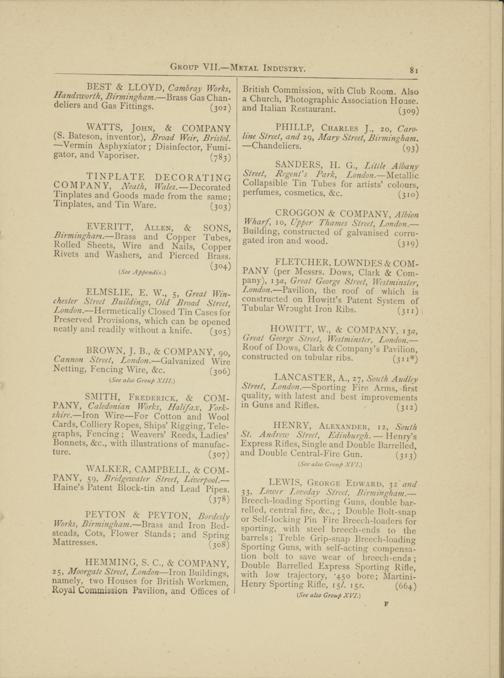 EVERITT, Allen, & SONS, Birmingham. —Brass and Copper Tubes, Rolled Sheets, Wire and Nails, Copper Rivets and Washers, and Pierced Brass.