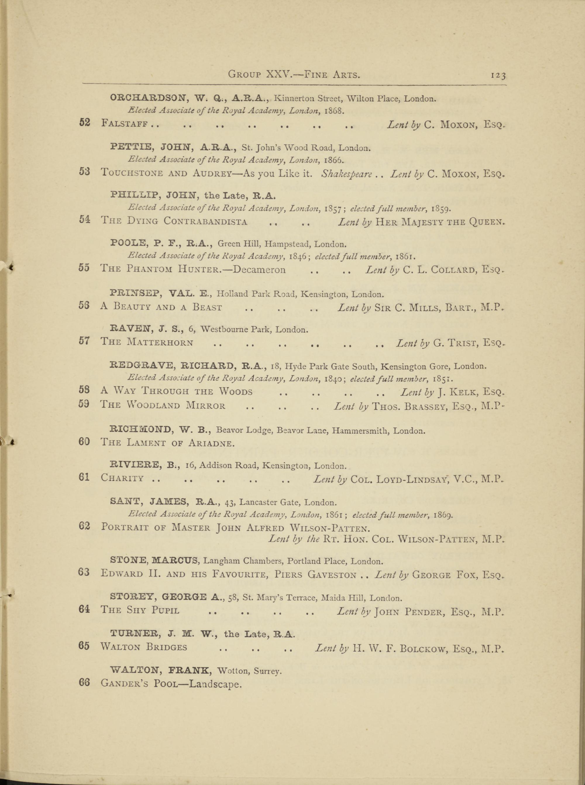 REDGRAVE, RICHARD, R.A., 18, Hyde Park Gate South, Kensington Gore, London. Elected Associate of the Royal Academy, London, 1840; elected full member, 1851.