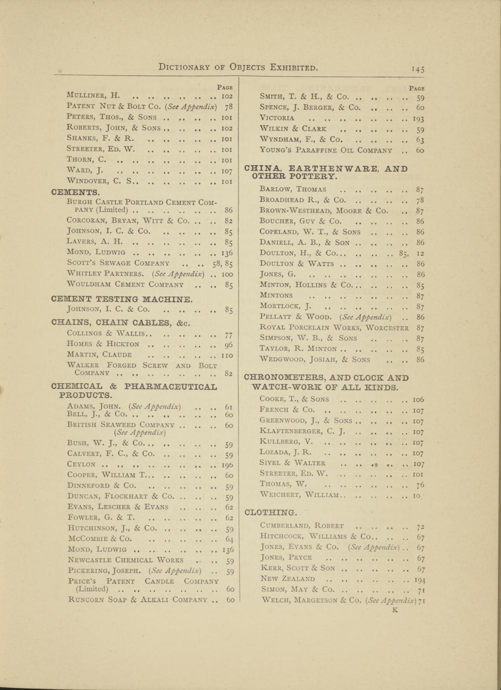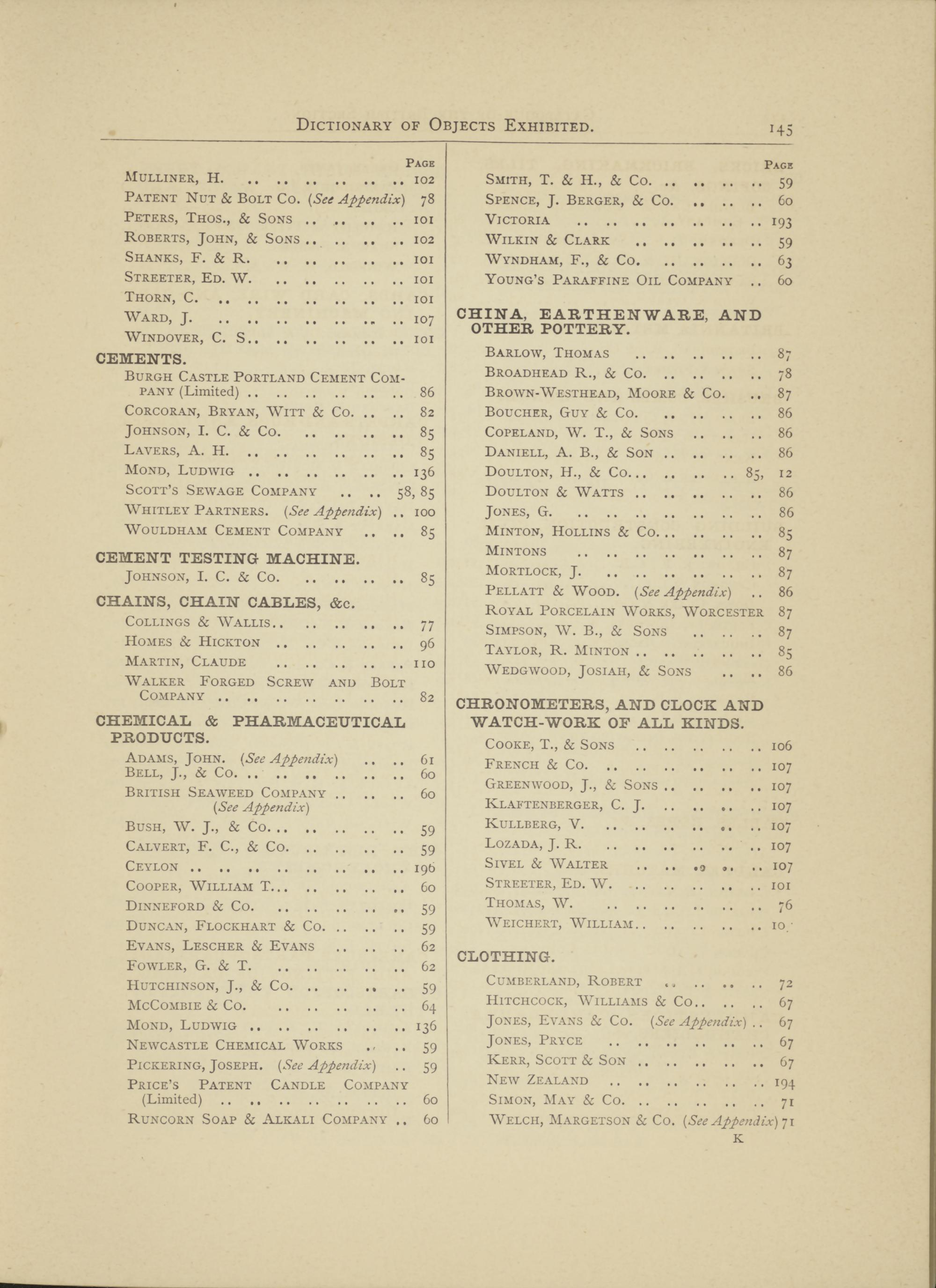 Whitley Partners. ( See Appendix ) .. 100 Wouldham Cement Company .. .. 85