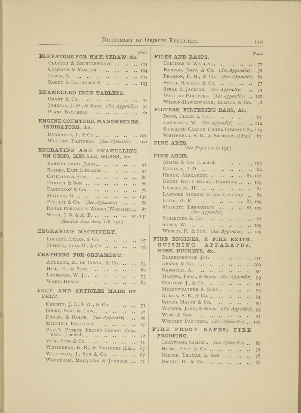 Whitley Partners. (See Appendix) .. 100 Wilson-Hawksworth, Ellison & Co.. 78 FILTERS, FILTERING BAGS, &c.