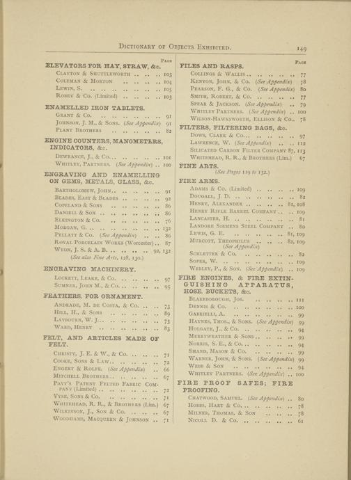 Silicated Carbon Filter Company 87, 113 Whitehead, R. R., & Brothers (Lim.) 67