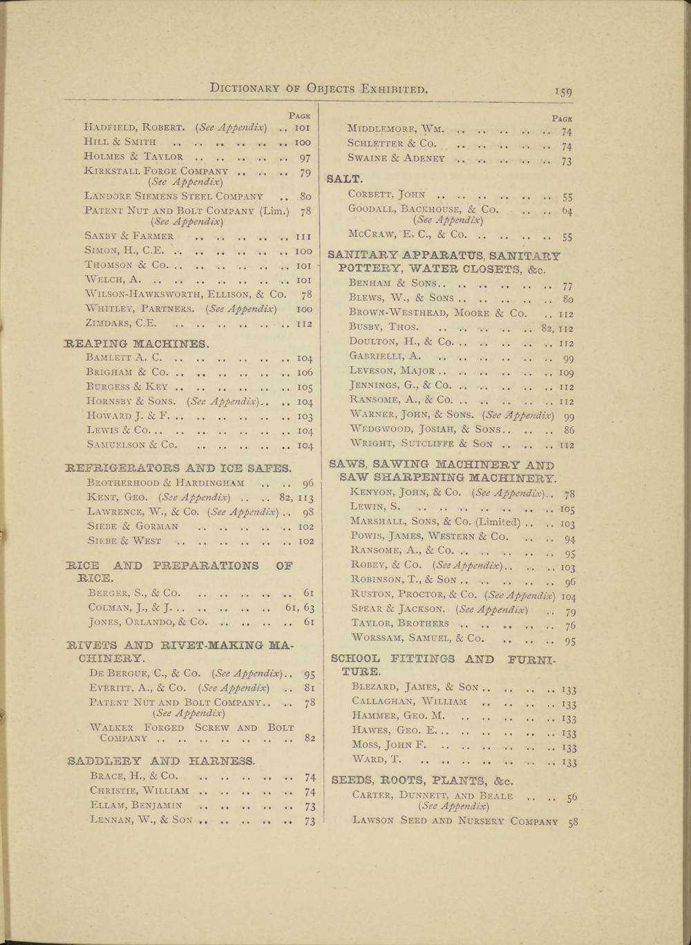 Ruston, Proctor, & Co. (See Appendix) 104 Spear Sc Jackson. (See Appendix) .. 79