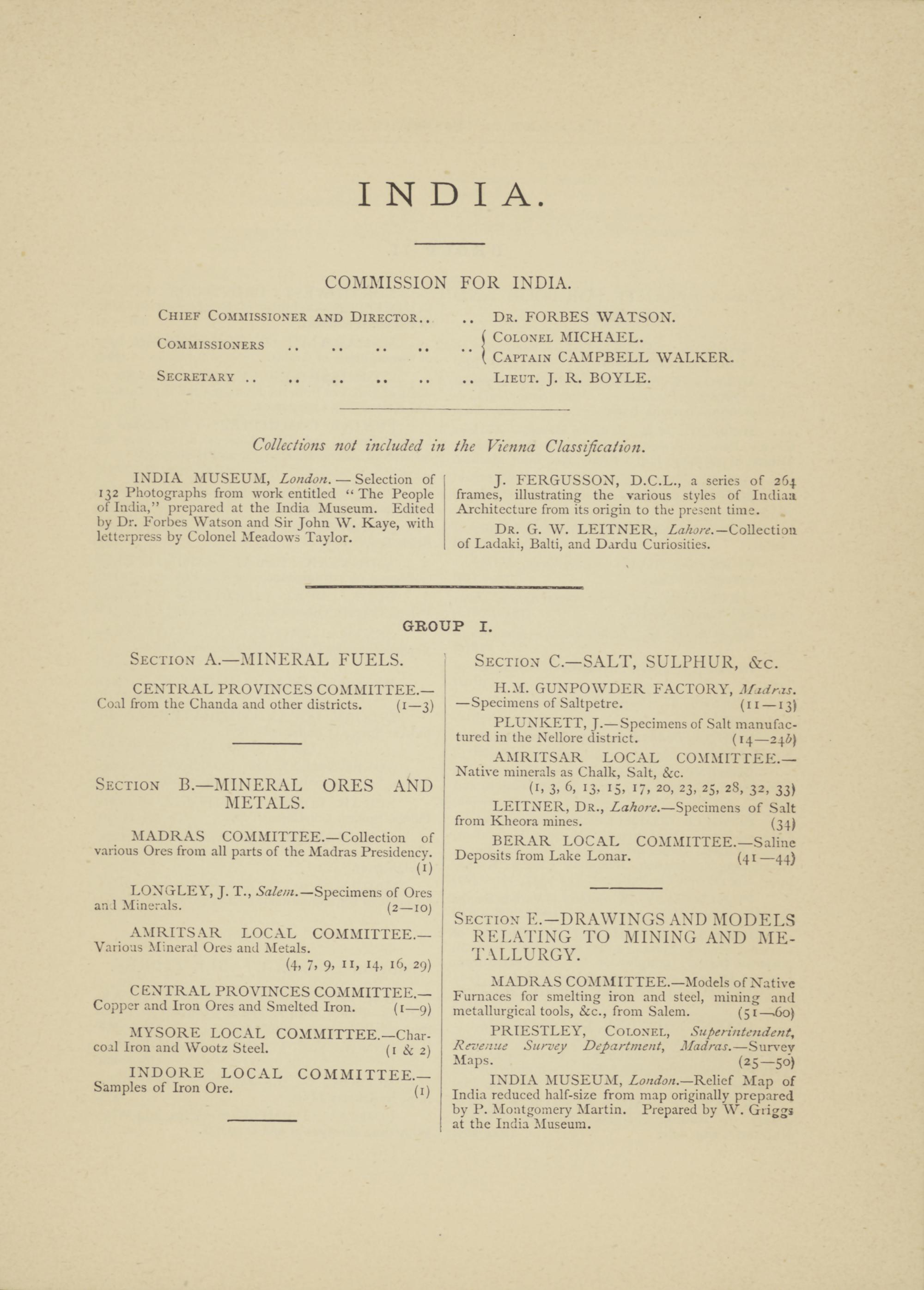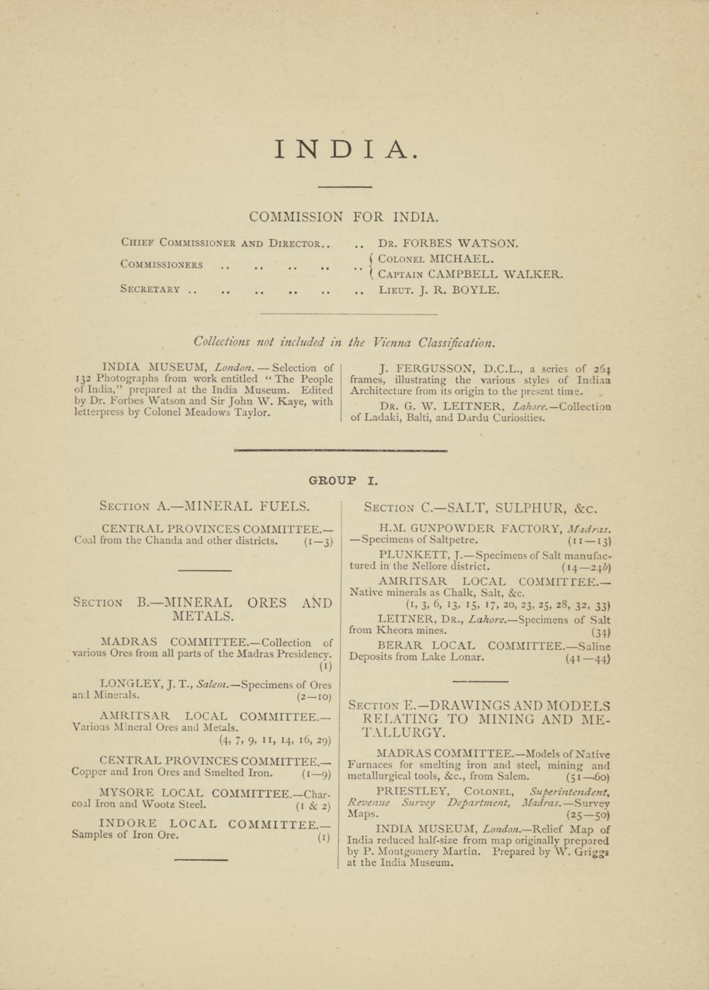 INDIA MUSEUM, London. — Selection of 132 Photographs from work entitled “ The People of India,” prepared at the India Museum. Edited by Dr. Forbes Watson and Sir John W. Kaye, with letterpress by Colonel Meadows Taylor.