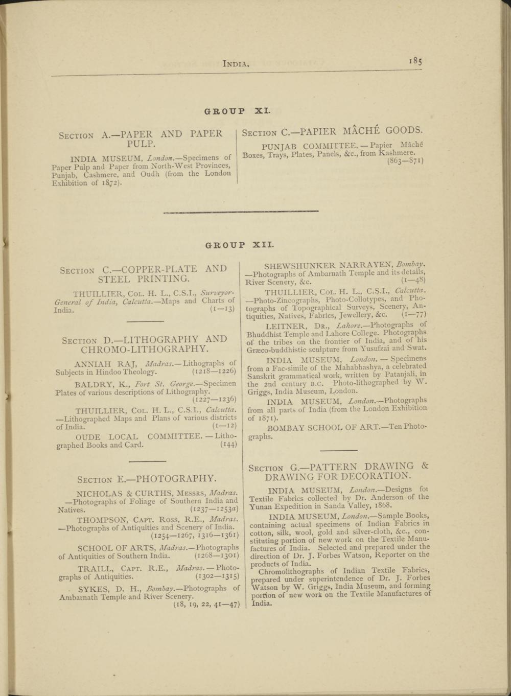 THUILLIER, Col. H. L., C.S.I., Calcutta. —Photo-Zincographs, Photo-Collotypes, and Photographs of Topographical Surveys, Scenery, Antiquities, Natives, Fabrics, Jewellery, See. (1— 77 )