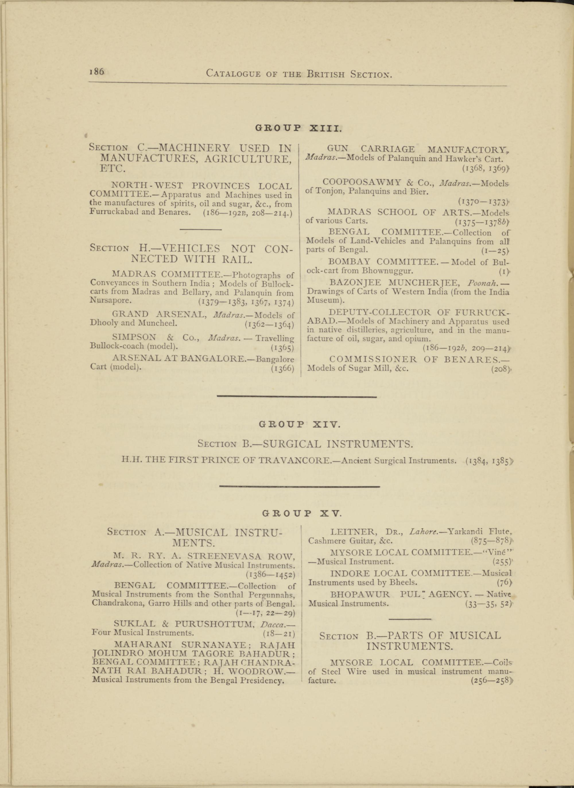 NORTH-WEST PROVINCES LOCAL COMMITTEE.— Apparatus and Machines used in the manufactures of spirits, oil and sugar, &c., from Furruckabad and Benares. (186—192?., 208—214.)