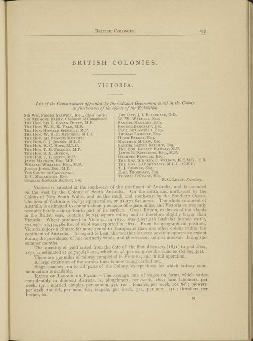 List of the Commissioners appointed by the Colonial Government to act in the Colony in furtherance of the objects of the Exhibition.