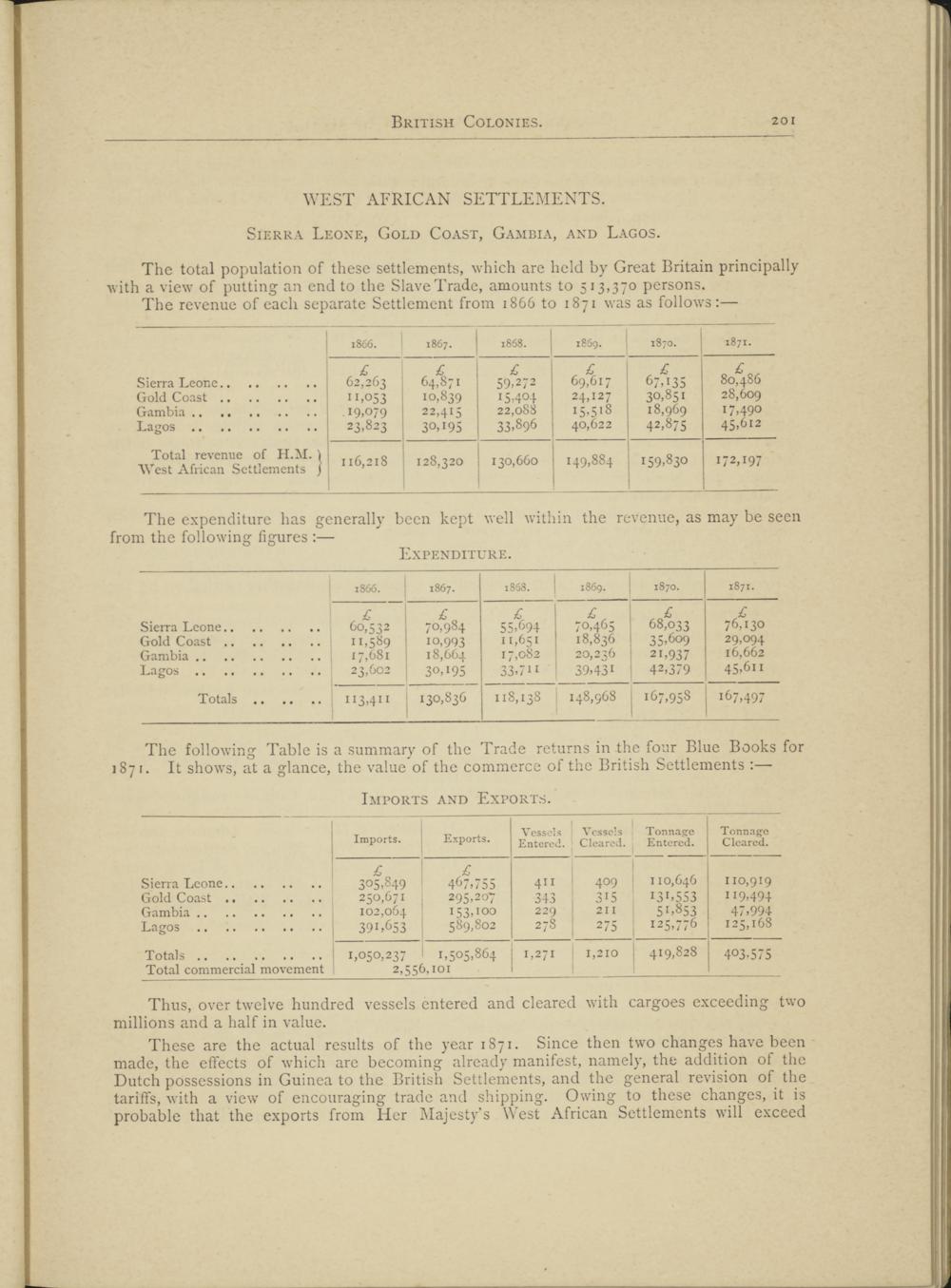 Sierra Leone, Gold Coast, Gambia, and Lagos.