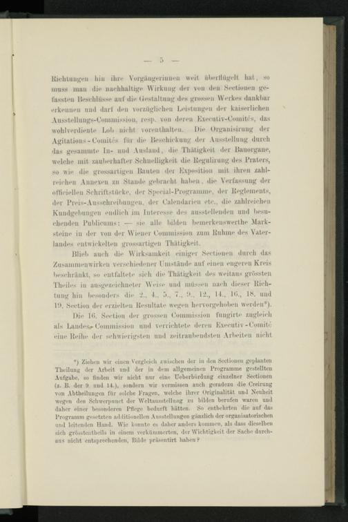 *) Ziehen wir einen Vergleich zwischen «1er in den Sectionen geplanten Theilung der Arbeit und der in dein allgemeinen Programme gestellten Aufgabe, so linden wir nicht nur eine Ueberbürdung einzelner Sectionen (z. B. der 9. und 14.), sondern wir vermissen auch geradezu die Creirung von Abtheilungen für solche Fragen, welche ihrer Originalität und Neuheit wegen den Schwerpunct der Weltausstellung zu bilden berufen waren und daher einer besonderen Pflege bedurft hätten. So entbehrten die auf das Programm gesetzten additionellcn Ausstellungen gänzlich der organisatorischen und leitenden Hand. Wie konnte es daher anders kommen, als dass dieselben sich grösstentheils in einem verkümmerten, der Wichtigkeit der Sache durchaus nicht entsprechenden, Bilde präsentirt haben?