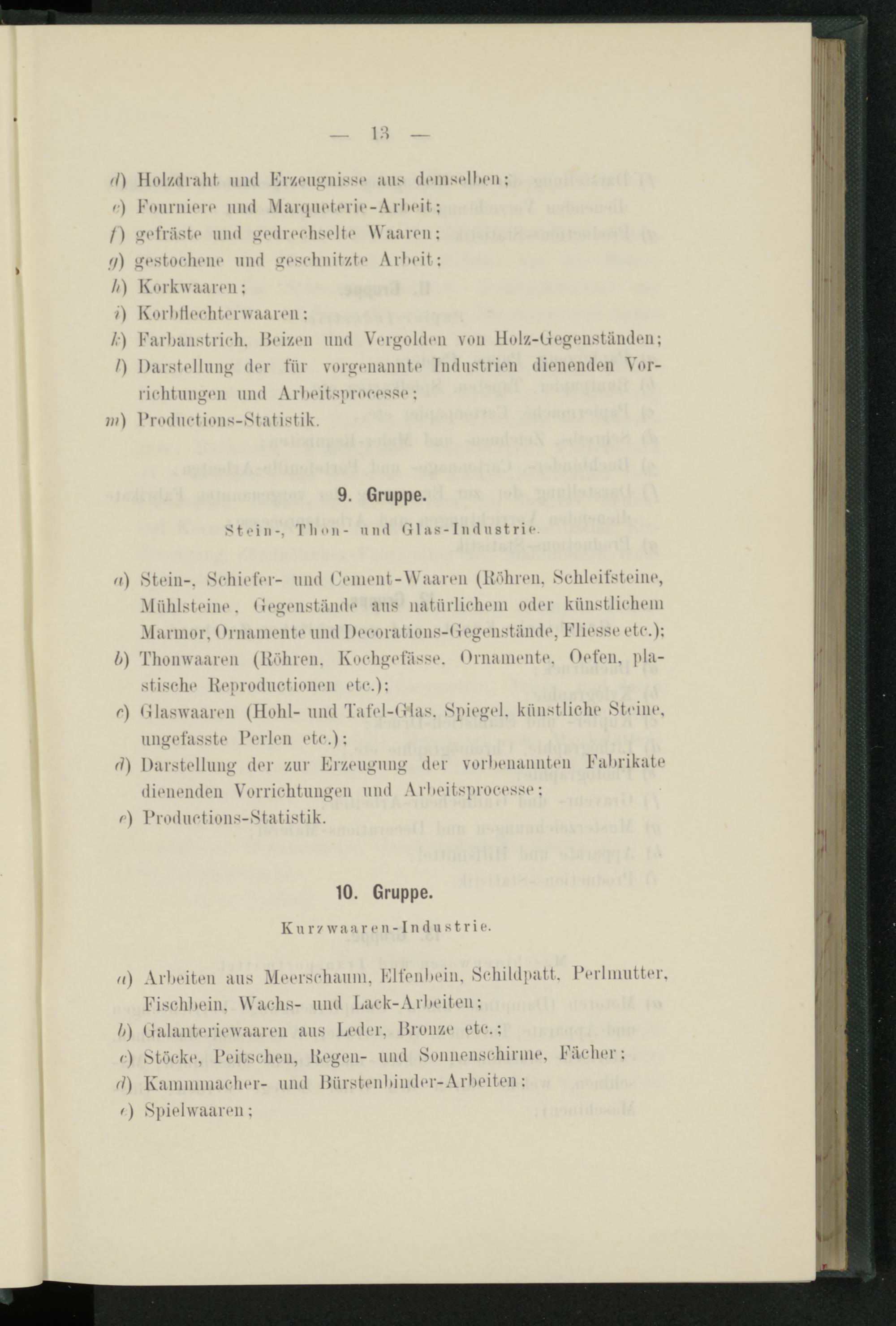 /•) Farbanstrich. Beizen und Vergolden von Holz-Gegenständen; /) Darstellung dor für vorgenannte Industrien dienenden Vorrichtungen und Arbeitsprocesse; m) Product ions-Statistik.