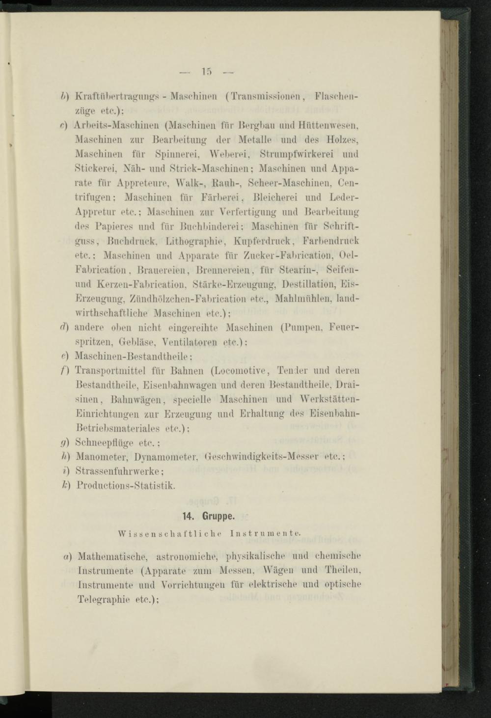 a) Mathematische, astronomiche, physikalische und chemische Instrumente (Apparate zum Messen, Wägen und Theilen. Instrumente und Vorrichtungen für elektrische und optische Telegraphie etc.);