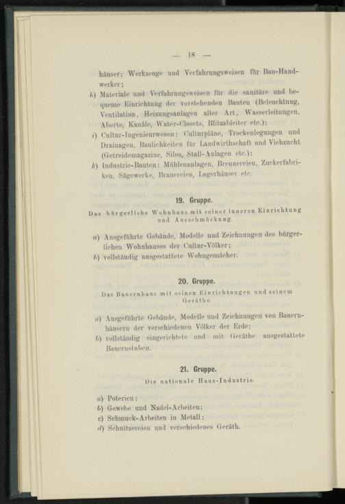 rr) Ausgeführte Gebäude, Modelle und Zeichnungen des bürgerlichen Wohnhauses der Cultur-Völker; h) vollständig ausgestattete Wohngemäeher.