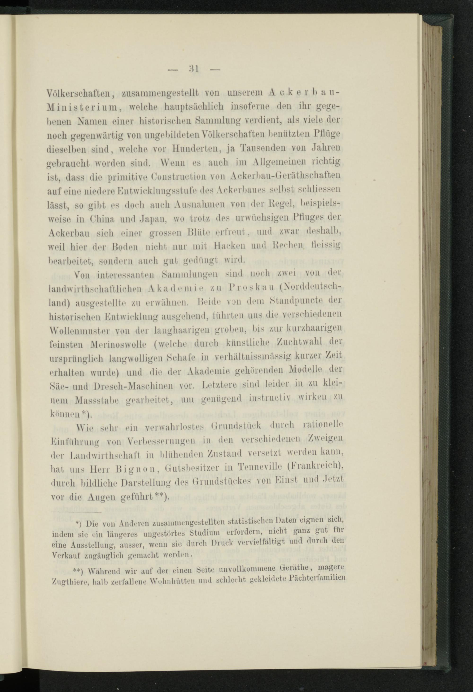 *) Die voll Anderen zusammengestellten statistischen Daten eignen sich, indem sie ein längeres ungestörtes Studium erfordern, nicht ganz gut für eine Ausstellung, ausser, wenn sie durch Druck vervielfältigt und durch den Verkauf zugänglich gemacht werden.