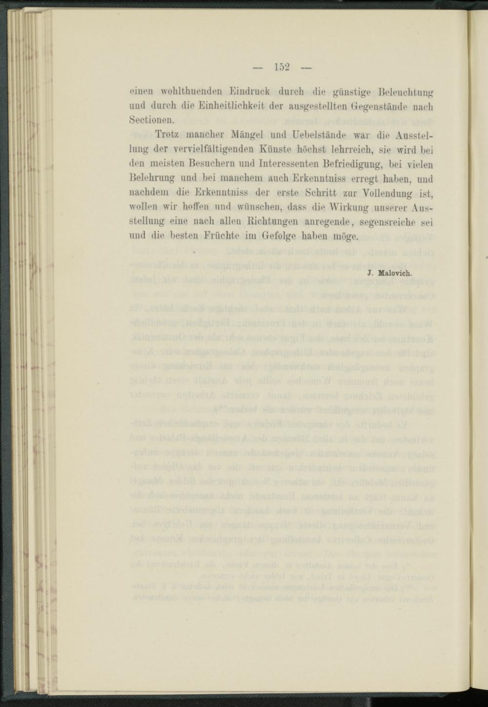 Trotz mancher Mängel und Uebelstände war die Ausstellung der vervielfältigenden Kiiuste höchst lehrreich, sie wird hei den meisten Besuchern und Interessenten Befriedigung, hei vielen Belehrung und hei manchem auch Erkenntniss erregt haben, und nachdem die Erkenntniss der erste Schritt zur Vollendung ist, wollen wir hoffen und wünschen, dass die Wirkung unserer Ausstellung eine nach allen Richtungen anregende, segensreiche sei und die besten Früchte im Gefolge haben möge.