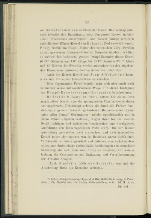 *) Ueber „Dampferzeugungs-Apparat d. Hrn. Belleville & Comp, in Paris“ siebe ,01'lic. Bericht über die Pariser Weltausstellung 1897“. Bd. II., 8. 03.