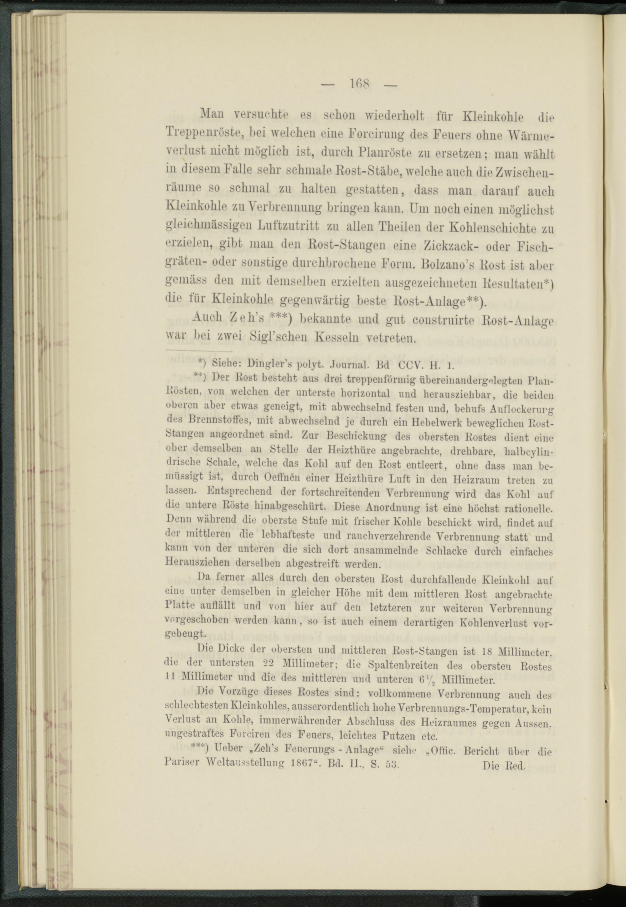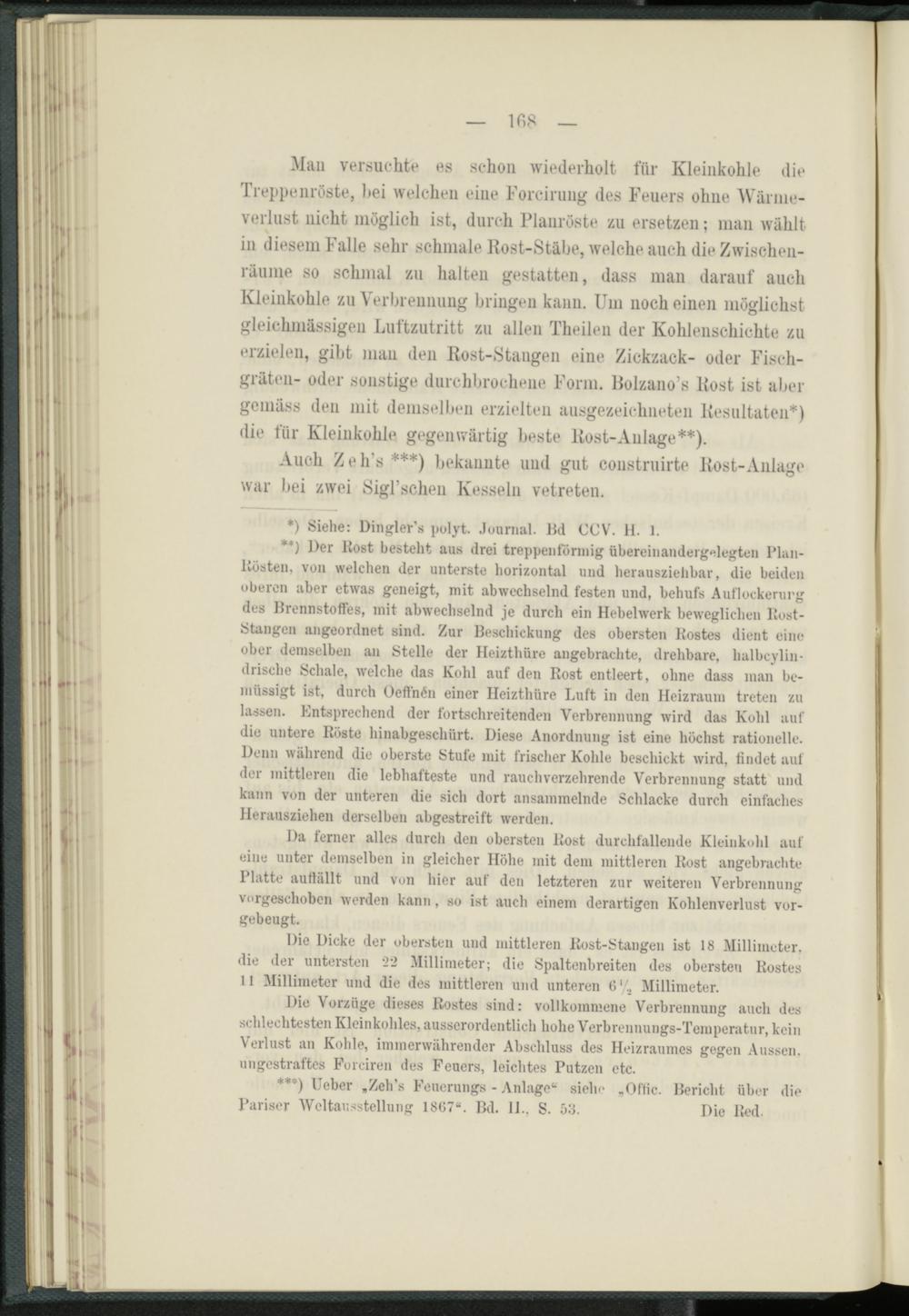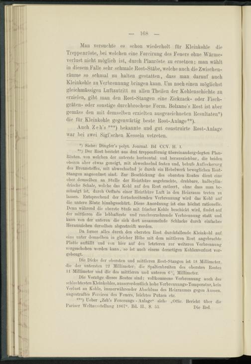 Auch Zeli’s ***) bekannte und gut construirte Rost-Anlage war bei zwei Sigl’schen Kesseln vetreten.