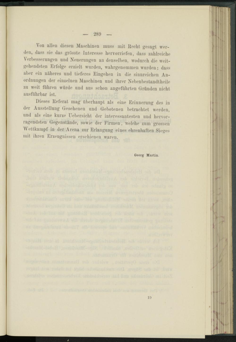 Dieses Referat mag überhaupt als eine Erinnerung des in der Ausstellung Gesehenen und Gebotenen betrachtet werden, und als eine kurze Uebersicht der interessantesten und hervorragendsten Gegenstände, sowie der Firmen. welche zum grossen Wettkampf in der Arena zur Erlangung eines ehrenhaften Sieges mit ihren Erzeugnissen erschienen waren.