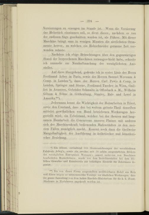 Auf diese übergehend, gedenke ich in erster Linie des Herrn Ferdinand Arbey in Paris, sowie der Herren Samuel Werssam & Comp, in London*), dann der Herren Carl Powis & Comp, in London, Springer und Sterne, Ferdinand Tuscher in Wien, Guil- iiet in Auxerres, Gebrüder Schmaltz in Olfenbach a. M., Wilhelm Gibson & Söhne in Göthenburg, Stanley, Knie und Level in Amerika**).