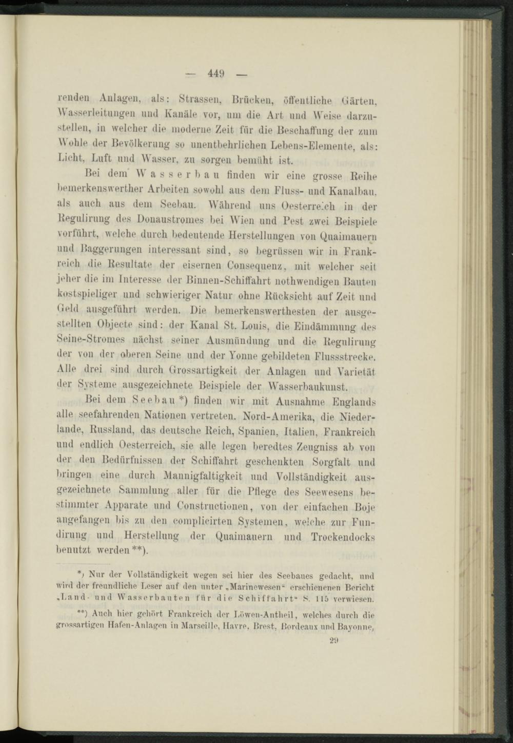 *) Nur der Vollständigkeit wegen sei hier des Seebaues gedacht, und wird der freundliche Leser auf den unter „Marinewesen“ erschienenen Bericht „Land- und Wasserbauten für die Schiffahrt 1 * S. 115 verwiesen.