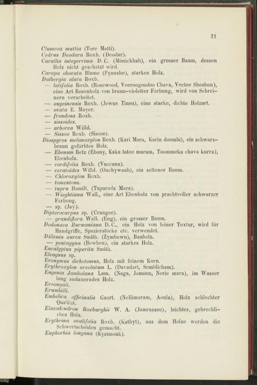 — latifolia Roxb. (Rosewood, Veeroogoodoo Chava, Yeetee Sheshun), eine Art Rosenholz von braun-violetter Färbung, wird von Schreinern verarbeitet.