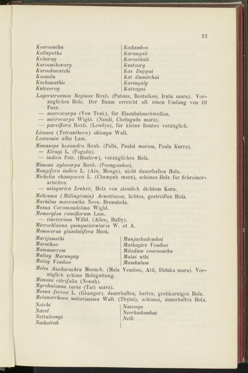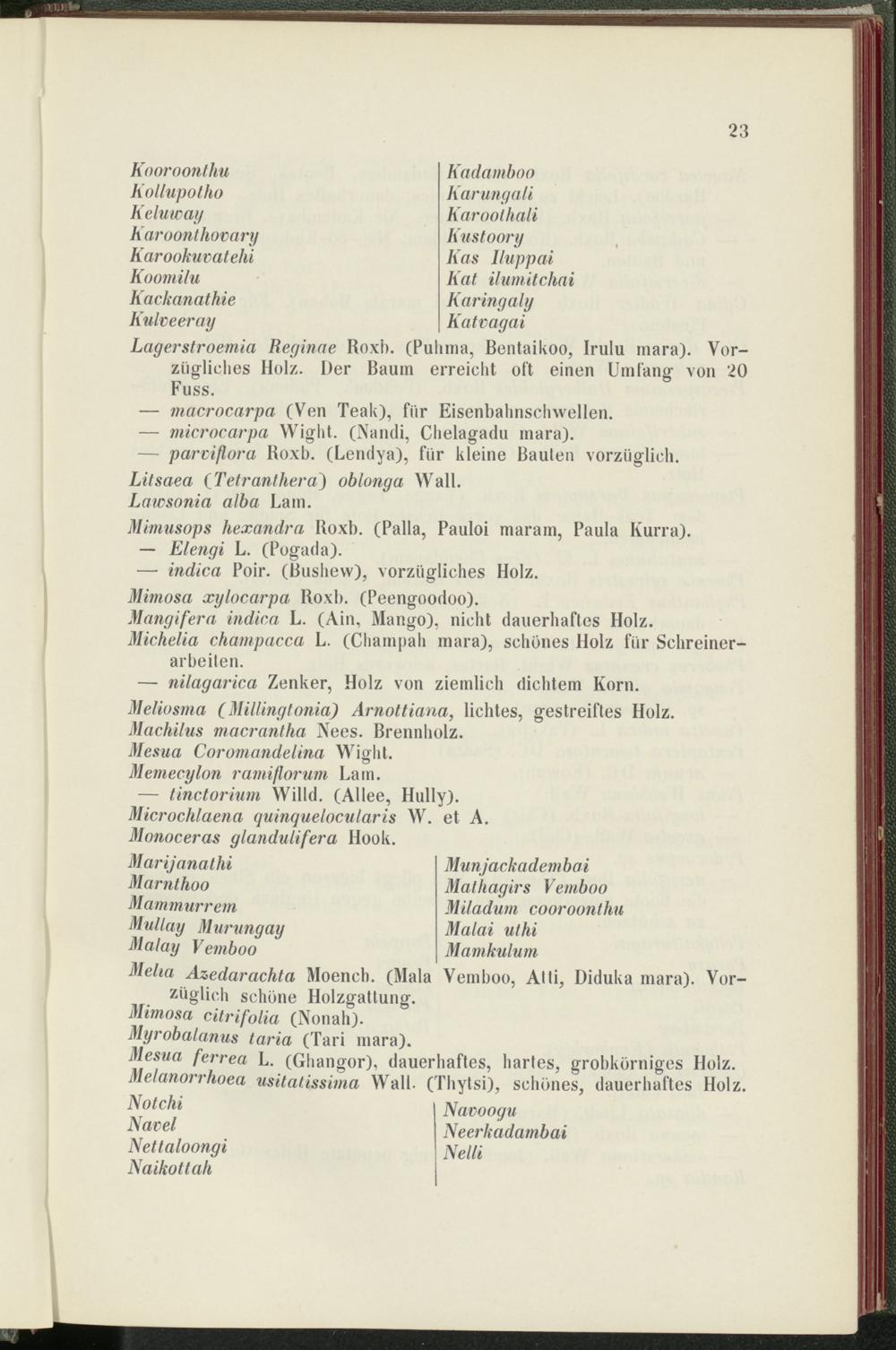 Lagerstroemia Reginae Roxh. (Puhrna, Bentaikoo, Irulu rnara). Vorzügliches Holz. Der Baum erreicht oft einen Umfang von 20 Fuss.