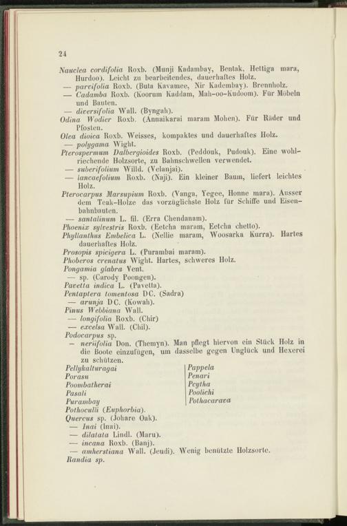 Pterocarpus Marsupium Roxb. (Vanga, Yegee, Honne mara). Ausser dem Teak-Holze das vorzüglichste Holz für Schiffe und Eisenbahnbauten.