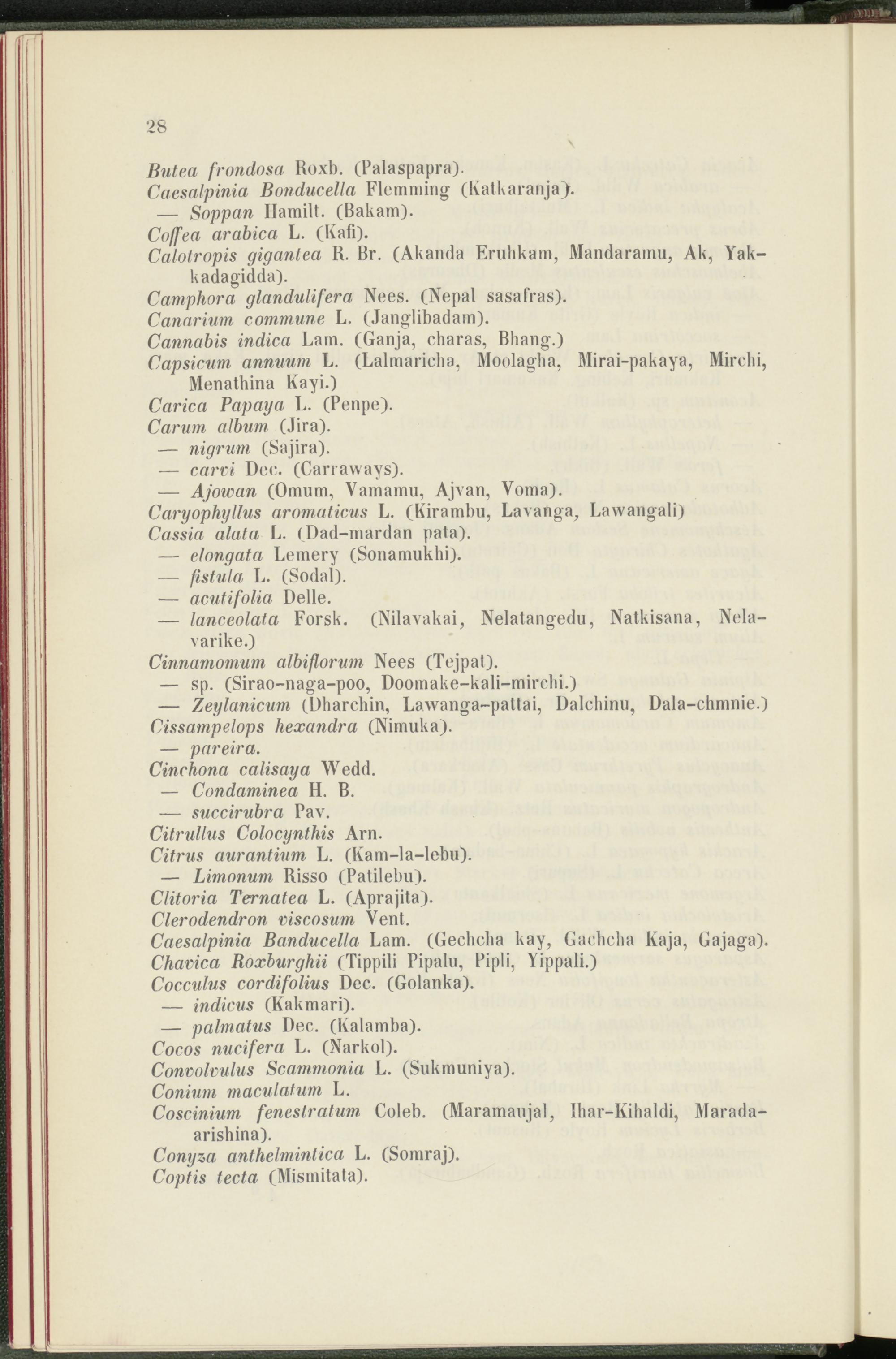 — Zeylanicum (Dharchin, Lawanga-pattai, Dalchinu, Dala-chmnie.) Cissampelops hexandra (Nimuka).
