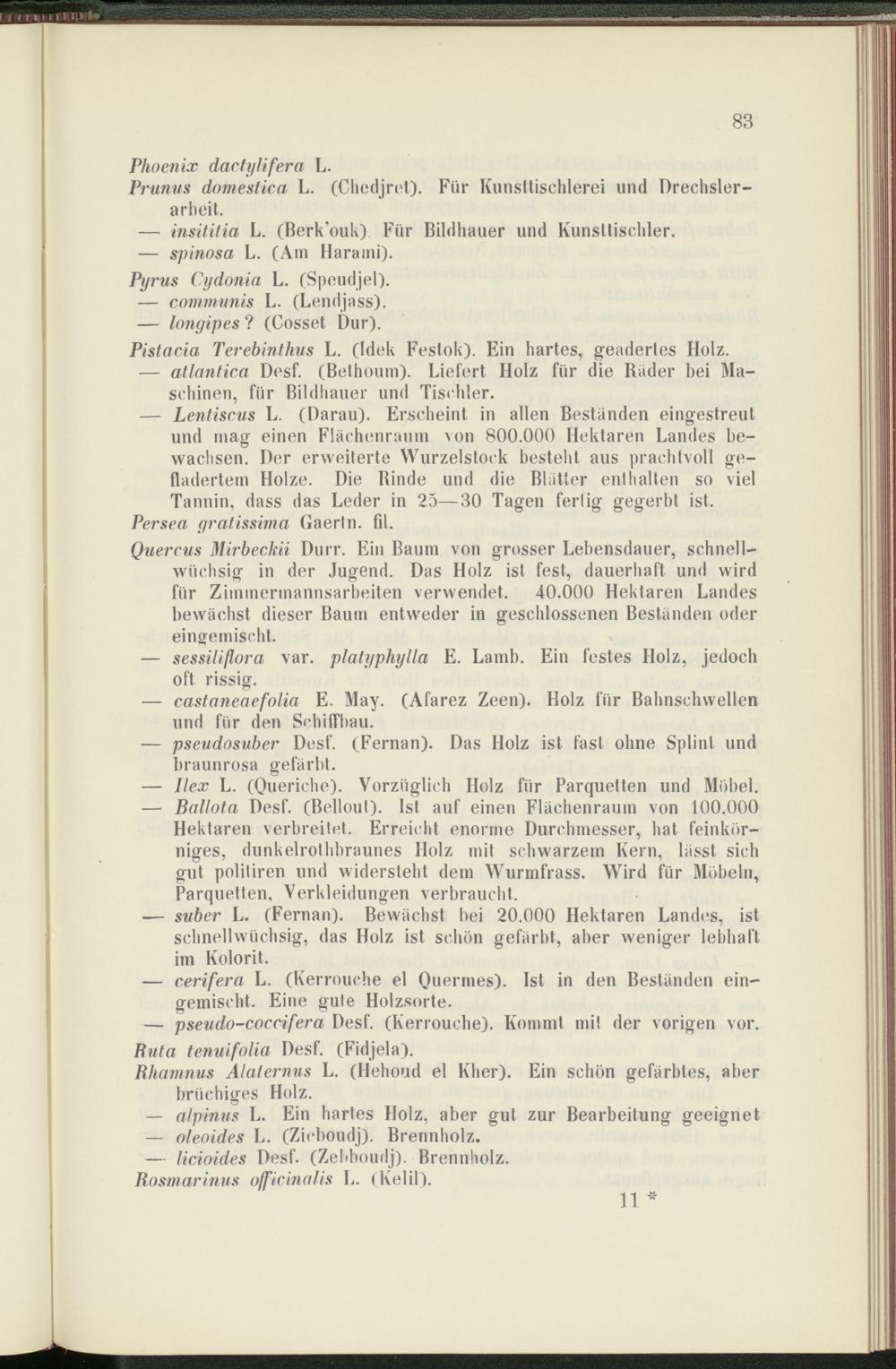 — cerifera L. (Kerrouche el Qiiermes). Ist in den Beständen eingemischt. Eine gute Holzsorte.