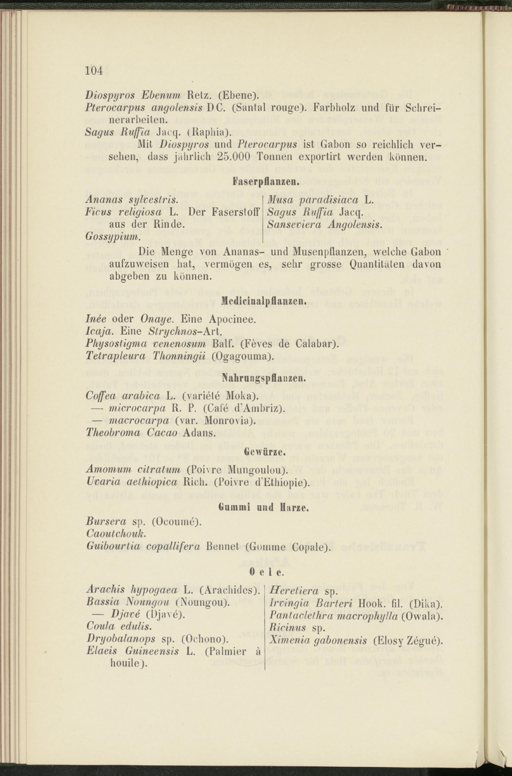 Die Menge von Ananas- und Musenpflanzen, welche Gabon ' aufzuweisen bat, vermögen es, sehr grosse Quantitäten davon abgeben zu können.