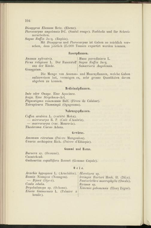 Mit Diospyros und Pterocarpus ist Gabon so reichlich versehen, dass jährlich 25.000 Tonnen exportirt werden können.