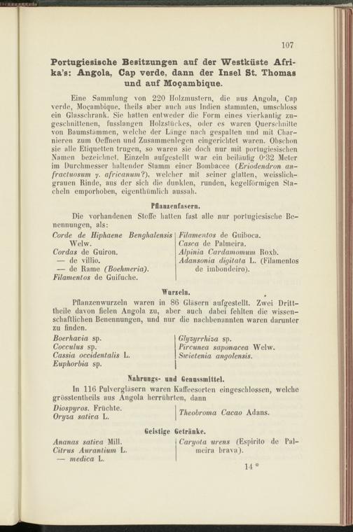 Pflanzenwurzeln waren in 86 Gläsern aufgestellt. Zwei Dritt— theile davon fielen Angola zu, aber auch dabei fehlten die wissenschaftlichen Benennungen, und nur die nachbenannten waren darunter zu finden.