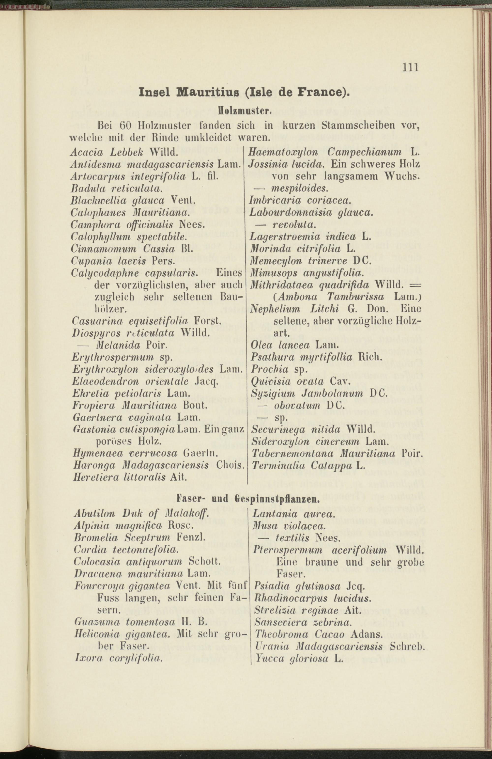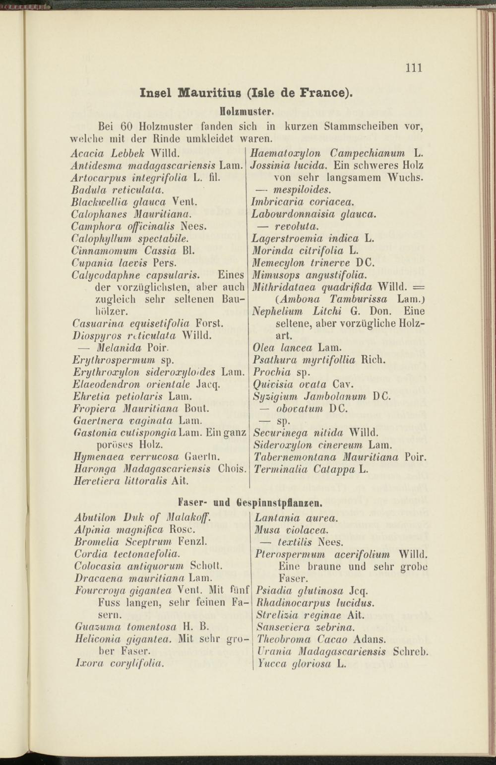 Mimusops angustifolia. Mithridataea quadrifida Willd. = {Ambona Tamburissa Lam.j Nephelium Litchi G. Don. Eine seltene, aber vorzügliche Holzart.