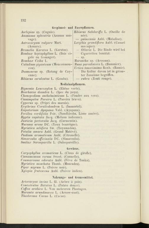 Musa paradisiaca L. (Bananier). Urtica tenacissima Roxb. (Ramie). Die Kultur davon ist in grösster Zunahme begriffen.