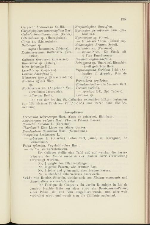 Die Fabrique de Chapeaux du Jardin Botanique in Rio de Janeiro brachte Hüte aus dem Stroh der Bombonassa-\ y ü\me, einer Palme, die aus Peru eingeführt wurde, nun aber weit verbreitet wird, und womit man die Chilihüte nachahmt.