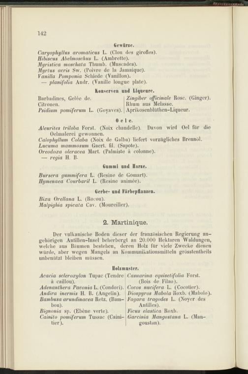 Der vulkanische Boden dieser der französischen Regierung an- gehörigen Antillen-Insel beherbergt an 20.000 Hektaren Waldungen, welche aus Bäumen bestehen, deren Holz für viele Zwecke dienen würde, aber wegen Mangels an Kommunikationsmitteln grösstentheils unbenützt bleiben müssen.