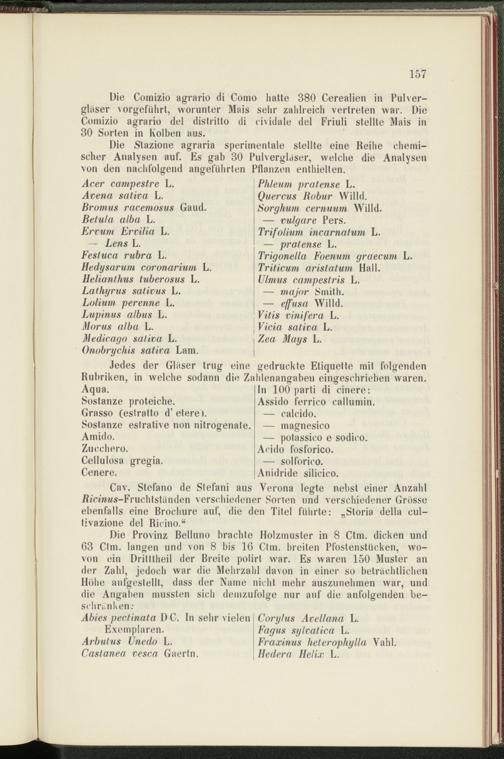 Die Comizio agrario di Como hatte 880 Cerealien in Pulvergläser vorgeführt, worunter Mais sehr zahlreich vertreten war. Die Comizio agrario del distrillo di cividale del Friuli stellte Mais in