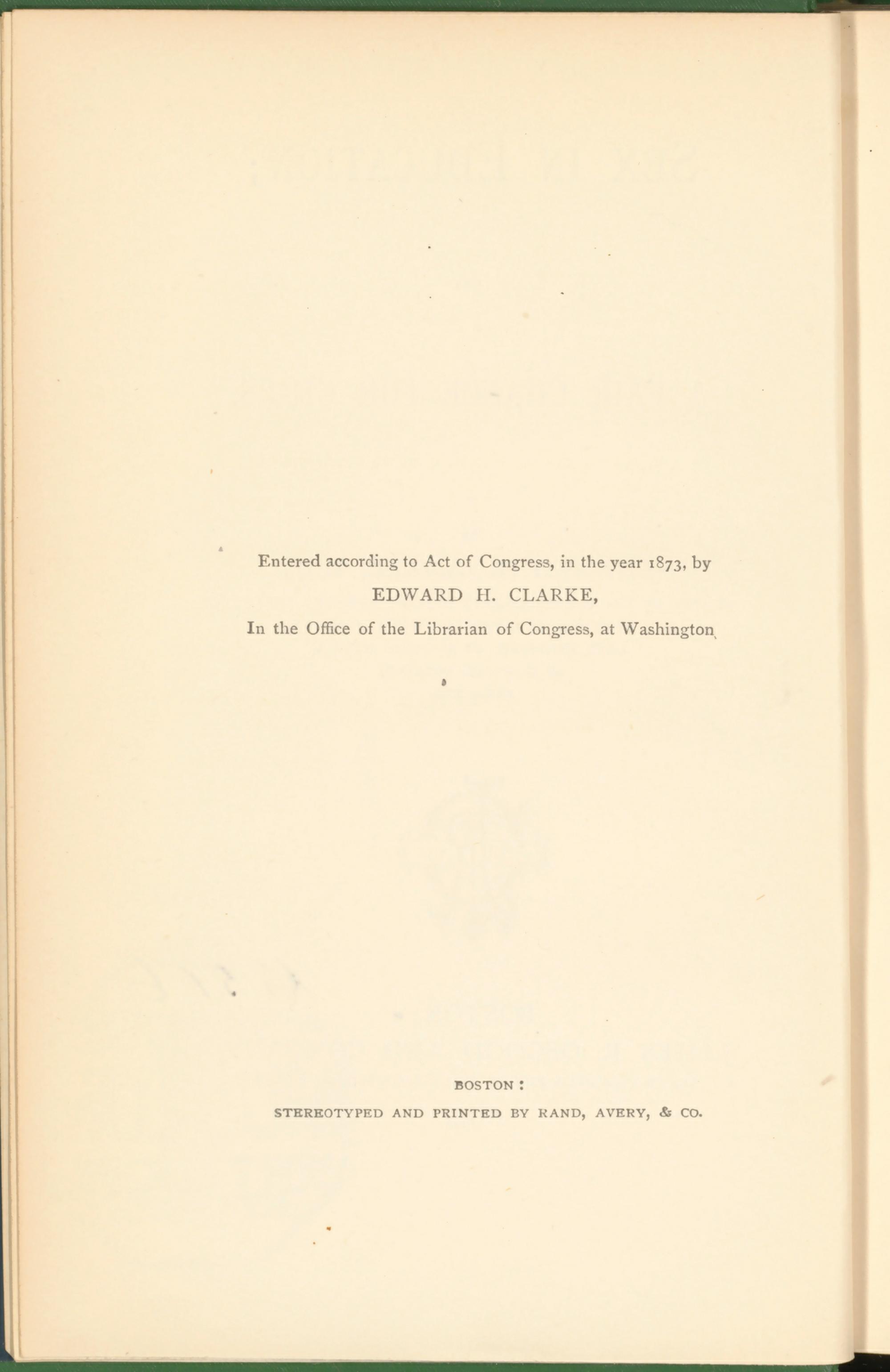 Entered according to Act of Congress, in the year 1873, by EDWARD H. CLARKE,