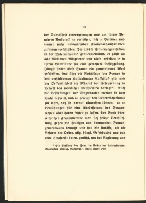 bet Dumpfheit emporgerungen unb um intern 83e= gelten ftachbrucf ju berteihen, ficft in SSereinen unb immer mehr anmachfetiben f$rauenorganif ationen 3 ufammengef(htoffen. $ie größte ^rauenorganifation ift bet ^nternationate grrauenmettbunb, er jfthtt an acftt Millionen TOtglieber unb biefe arbeiten ie in ihrem $totertanbe für eine gerettete ©efeftgebung. $üngfi flauen biefe grauen ein gemeinfatneS Böerf gefdjaffen, bas über bie ^Rechtslage ber grauen in ben berfchiebenen ftntturftaaten $tuffchtuft gibt unb ber DeffentUdjfeit bie fanget ber ©efeftgebung in betreff beS meibtichen ©efchtechteS bartegt*. Stucft bie ©eftrebungen ber ©injetfiaaten tnerben in bem ©uche geftreift, unb es gereicht ben Defterreicfterinnen 5 ur ©h*e, baft fie barauf tjimueifen tönnen, es an ©emühungen für eine ©erbefferung bes grauen- rechtes nicht haben fehlen au taffen. $et ©unb öfter- retcftifchcr ^rauenbereine mar ficft feiner ©erpftidj- tung gegen bie heutigen unb fommenben grauen- generationen bemuftt unb hat bie Slntäffe, bie bie Reform bes Defter, attg. bürgt. ©efeftbucftes unb bas neue Strafrecht boten, genüftt, um ber ^Regierung unb