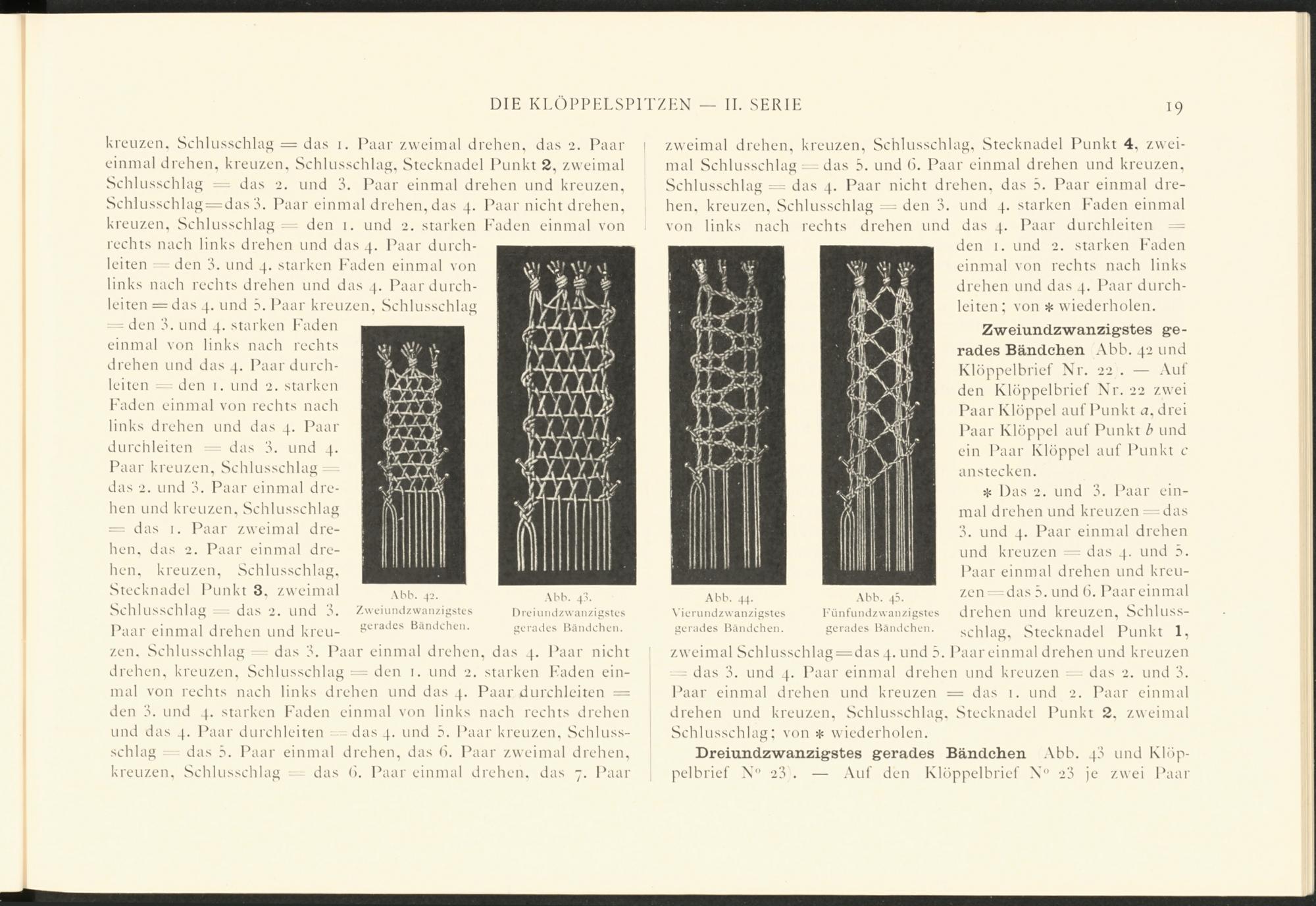 Dreiundzwanzigstes gerades Bändchen Abb. 4a und Klöppelbrief N“ 23 . — Auf den Klöppelbrief N° 23 je zwei Paar