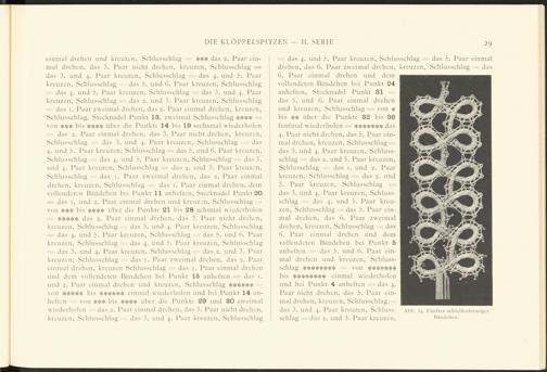 einmal drehen und kreuzen, Schlusschlag — *** das 2. Laar einmal drehen, das 3 . Paar nicht drehen, kreuzen, Schlusschlag = das 3 . und 4. Paar kreuzen, Schlusschlag --- das 4. und 5 . Paar kreuzen. Schlusschlag das 5 . und (i. Paar kreuzen, Schlusschlag = das 4. und 3 . Paar kreuzen. Schlusschlag - das 3 . und 4. Paar kreuzen, Schlusschlag — das 2. und 3 . Paar kreuzen, Schlusschlag das 1. Paar zweimal drehen, das 2. Paar einmal drehen, kreuzen, Schlusschlag, Stecknadel Punkt 13 . zweimal Schlusschlag **** -■= von *** bis **** über die Punkte 14 bis 19 sechsmal wiederholen das 2. Paar einmal drehen, das 3 . Paar nicht drehen, kreuzen. Schlusschlag -= das 3 . und 4. Paar kreuzen, Schlusschlag - - das 4. und 3 . Paar kreuzen, Schlusschlag = das 3 . und (I. Paar kreuzen, Schlusschlag - das 4. und 3 . Paar kreuzen, Schlusschlag - das 3 . und 4. Paar kreuzen, Schlusschlag = das 2. und 3 . Paar kreuzen, Schlusschlag das 1. Paar zweimal drehen, das 2. Paar einmal drehen, kreuzen, Schlusschlag = das 1. Paar einmal drehen, dem vollendeten Händchen bei Punkt 11 anheften, Stecknadel Punkt 20 = das 1. und 2. Paar einmal drehen und kreuzen, Schlusschlag von *** bis **** über die Punkte 21 bis 28 achtmal wiederholen ***** das 2. Paar einmal drehen, das 3 . Paar nicht drehen, kreuzen, Schlusschlag ---= das 3 . und 4. Paar kreuzen, Schlusschlag = das 4. und 3 . Paar kreuzen, Schlusschlag - - das 3 . und b. Paar kreuzen, Schlusschlag - - das 4. und 3 . Paar kreuzen, Schlusschlag — das 3 . und 4. Paar kreuzen, Schlusschlag —: das 2. und 3 . Paar kreuzen, Schlusschlag das 1. Paar zweimal drehen, das 2. Paar einmal drehen, kreuzen Schlusschlag —- das 1. Paar einmal drehen und dem vollendeten Händchen bei Punkt 15 anheften = das 1. und 2. Paar einmal drehen und kreuzen. Schlusschlag ****** von ***** bis ****** einmal wiederholen und bei Punkt 14 anheften :— von *** bis **** über die Punkte 29 und 30 zweimal wiederholen das 2, Paar einmal drehen, das 3 . Paar nicht drehen, kreuzen, Schlusschlag das 3 . und 4. Paar kreuzen, Schlusschlag