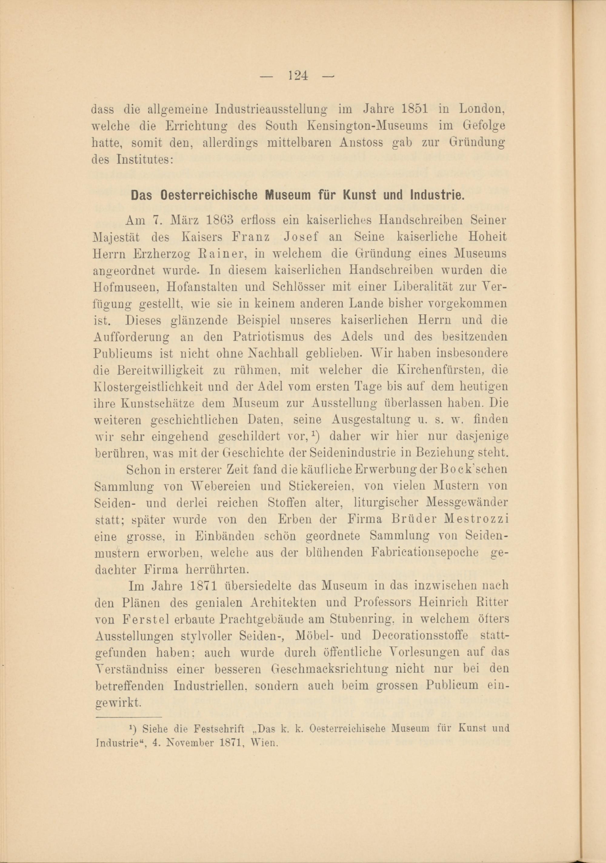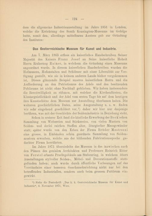H Siehe die Festschrift ,.Das k. k. Oesterreiehische Museum für Kunst und Industrie“, 4. November 1871, Wien.