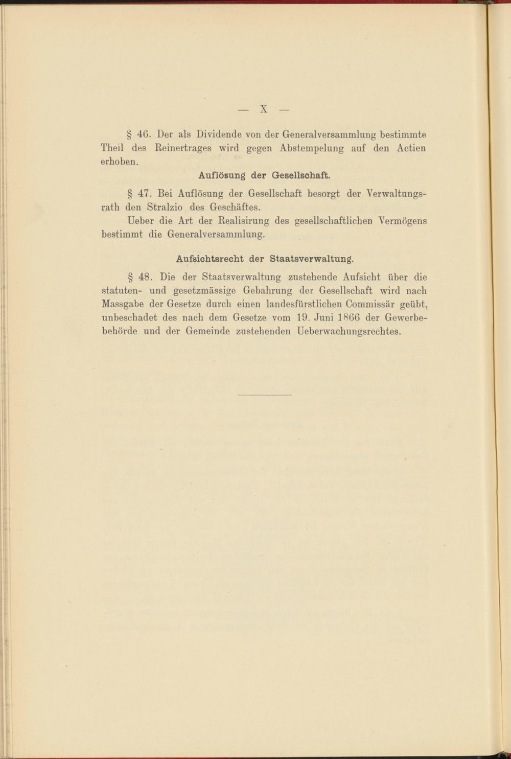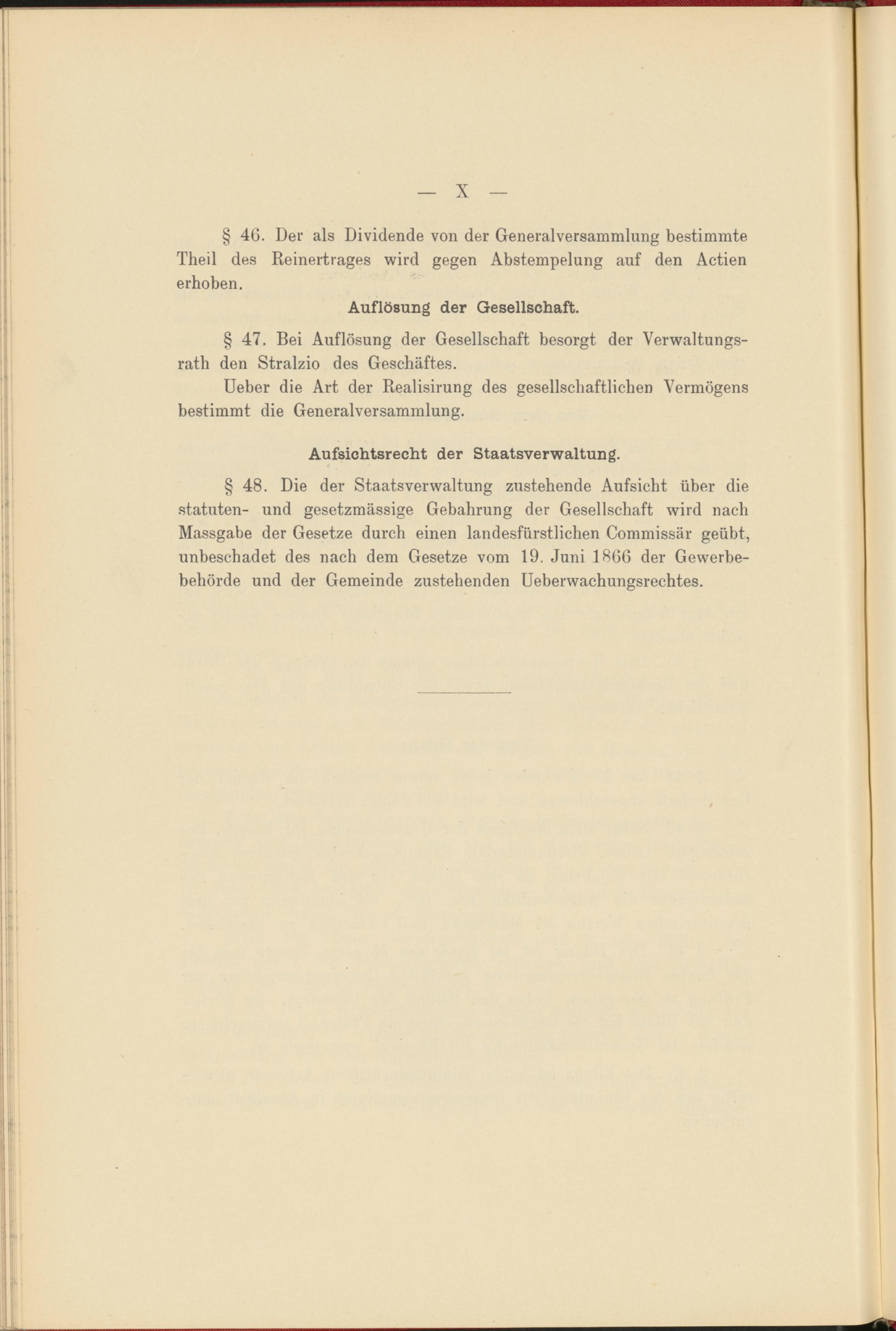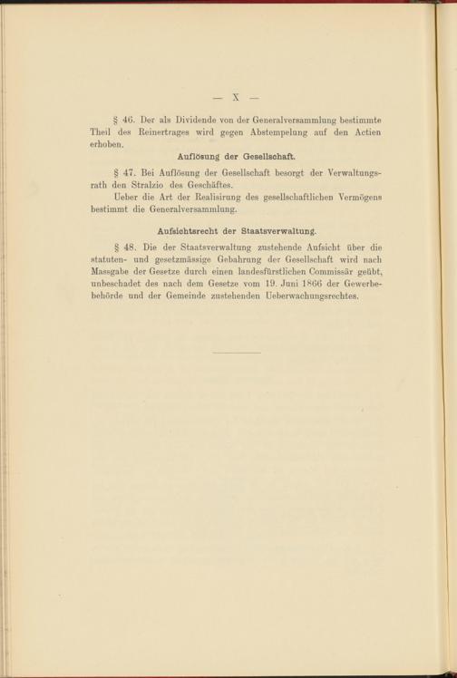 § 48. Die der Staatsverwaltung zustehende Aufsicht über die Statuten- und gesetzmässige Gebahrung der Gesellschaft wird nach Massgabe der Gesetze durch einen landesfürstlichen Commissär geübt, unbeschadet des nach dem Gesetze vom 19. Juni 1866 der Gewerbebehörde und der Gemeinde zustehenden Ueberwachungsrechtes.