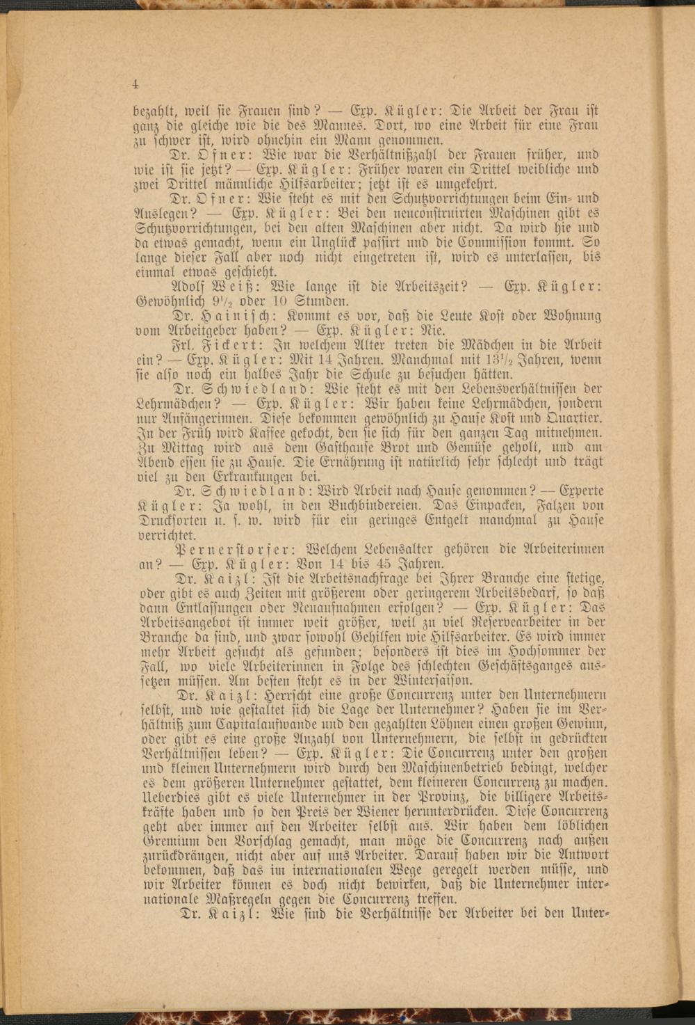 Tr. Schmied ha n d : Wird Arbeit nach Hause genommen? Experte Kügler: Ja wohl, in den Buchbindereien. Das Einpacken, Falzen von Trncksorten n. s. w. wird für ein geringes Entgelt manchmal zu Hanse verrichtet.