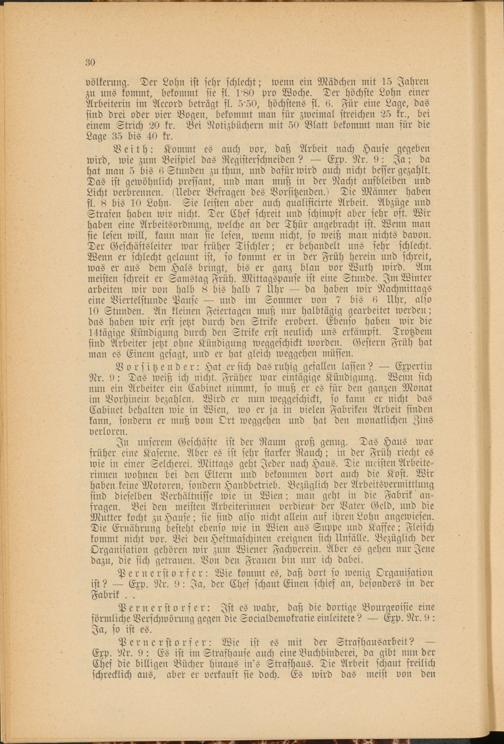P e r n c r st o rs e r: Wie ist es mit der Strafhausarbeit? — Exp. Nr. 9 : Es ist im Strafhanse auch eiue Buchbinderei, da gibt nun der Chef die billigen Bücher hinaus in's Strafhaus. Die Arbeit schaut freilich schrecklich aus, aber er verkauft sie doch. Es wird das meist von den